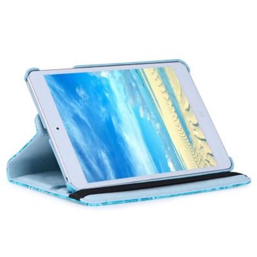 360 DEGREE ROTATING LEATHER STAND FLIP FOLIO CASE IPAD MINI 1/2/3 (LAKE BLUE)