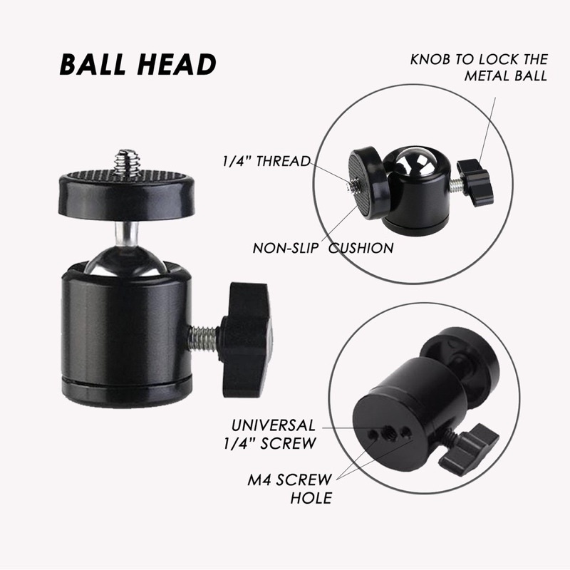 360 Degree Rotate Swivel Mini Ball Head Screw Tripod Mount for Canon Nikon Sony DSLR Camera Camcorder LED Light Bracket