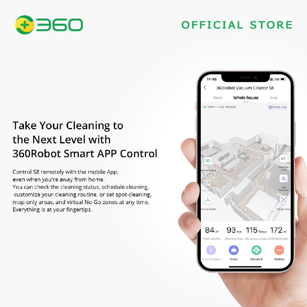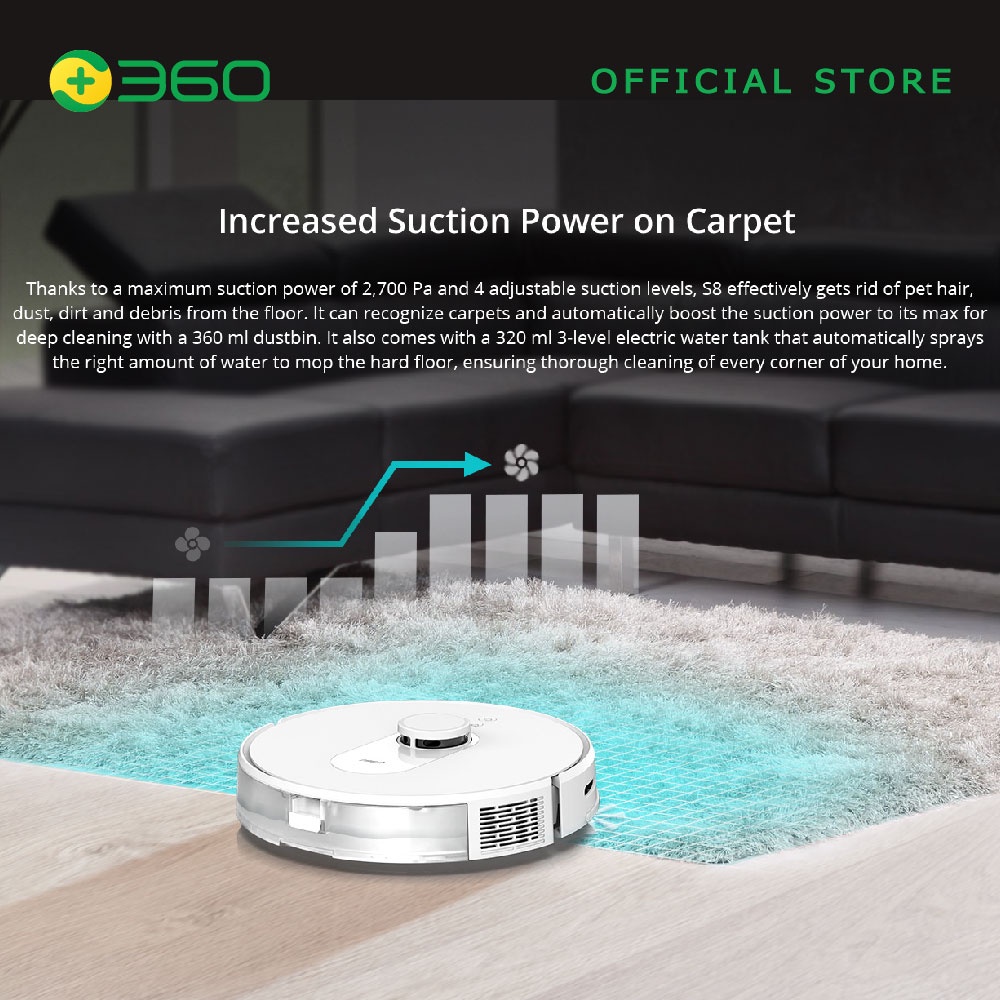 360 SmartLife S8 Robot Vacuum Cleaner | 2 in 1 vacuuming & mopping | App| LiDAR SLAM|2700Pa Suction-1Year Local Warranty