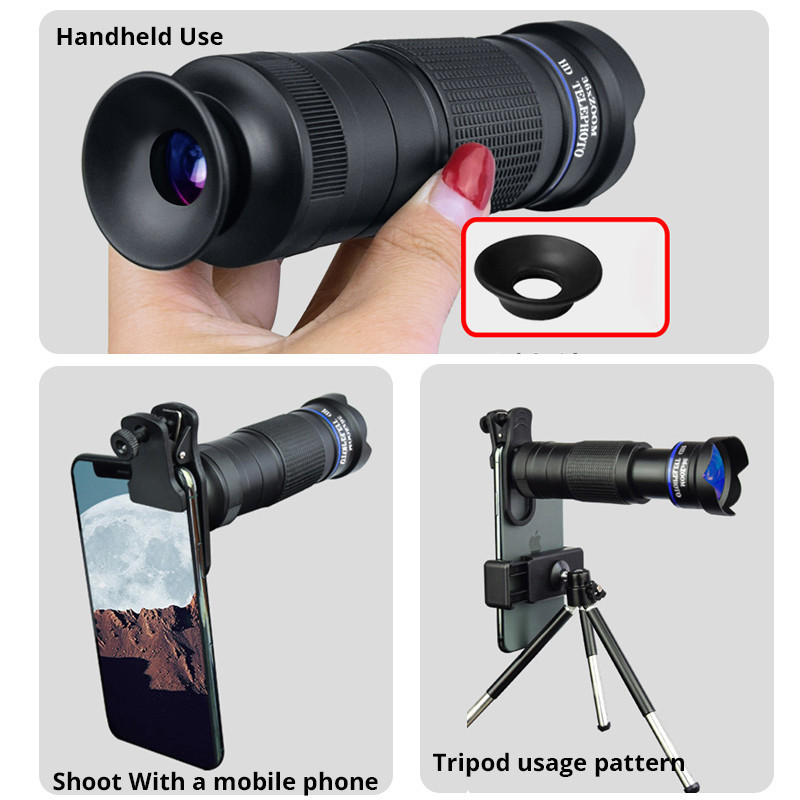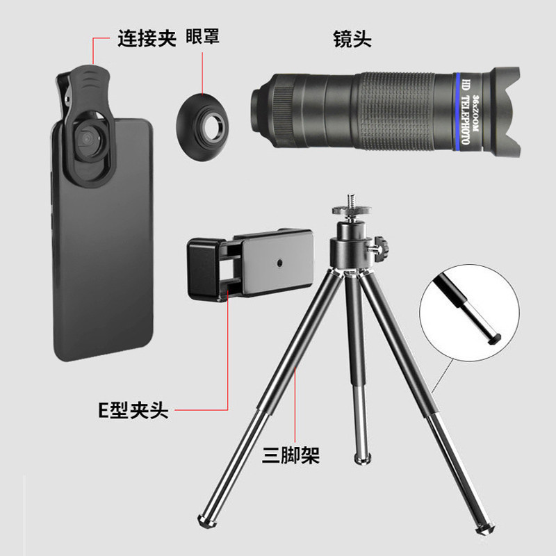 36X Universal Mobile Phone Camera Lens HD Monocular Telescope External Phone Camera Zoom Macro Extensible tripod