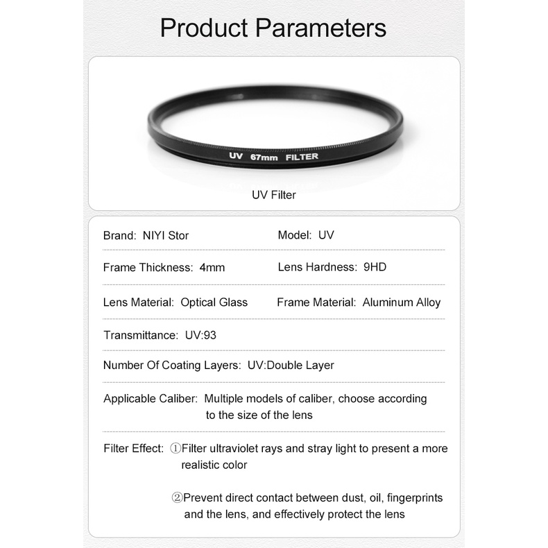 37-82mm Digital Camera Lens UV Filter Double Layer Coating Filter Lens Protector for Canon Nikon Sony Fuji DSLR SLR Camera