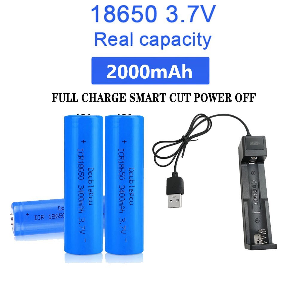 2000mah 18650 + Charger 3.7v 18650 rechargeable lithium battery for flashlight batteries 18650充电器+电池