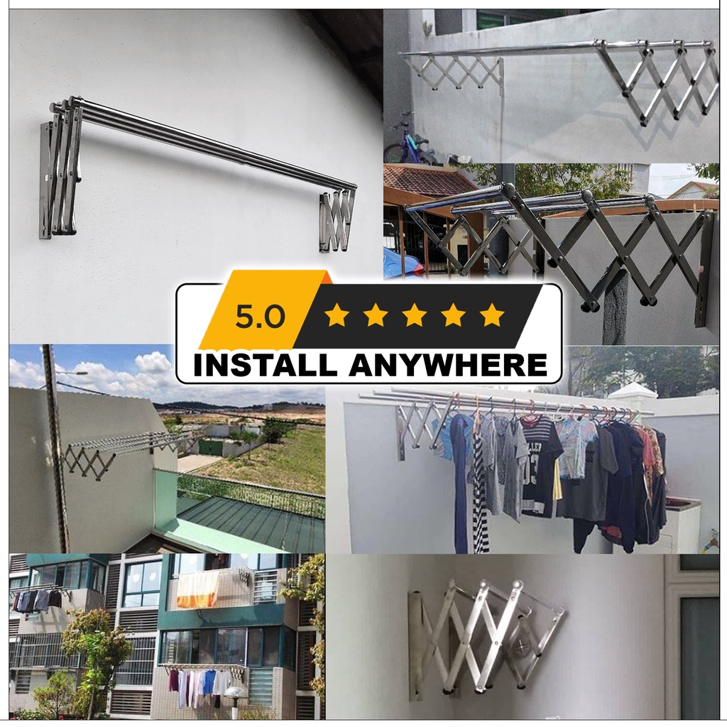 3Bar Wall Mounted Clothes Drying Rack Retractable Clothes Hanger Ampaian Baju Dinding Foldable Wall Mounted Cloth Hanger