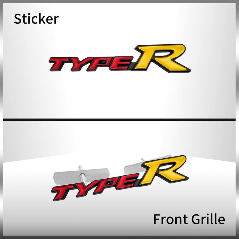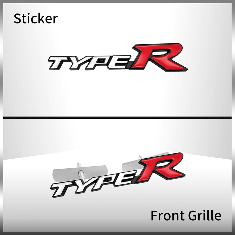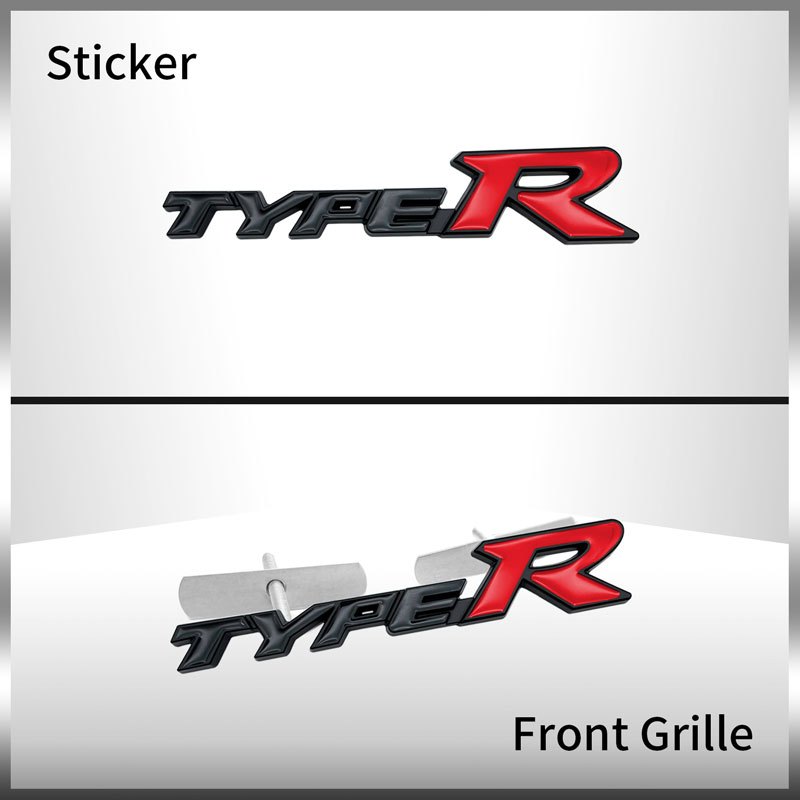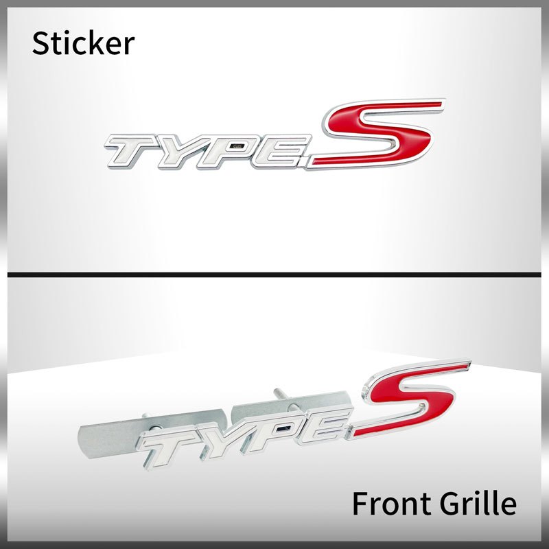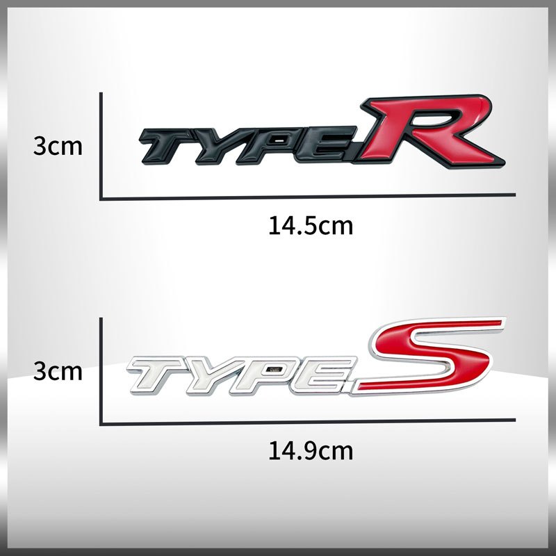 3D Car Metal Type R Logo Type S Sticker Front Grille Emblem Rear Trunk Badge Decal For Honda CIVIC FD2 FA 5 Mugen TypeR TypeS Racing Auto Styling Accessories