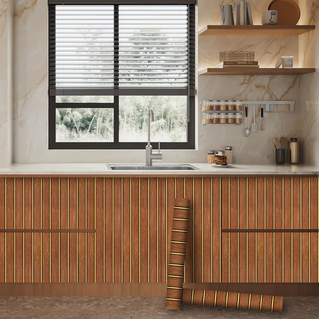 3D Wall Flutted Wall Line Gold Wall Sticker Wood kertas dinding Wallpaper Kabinet Decor