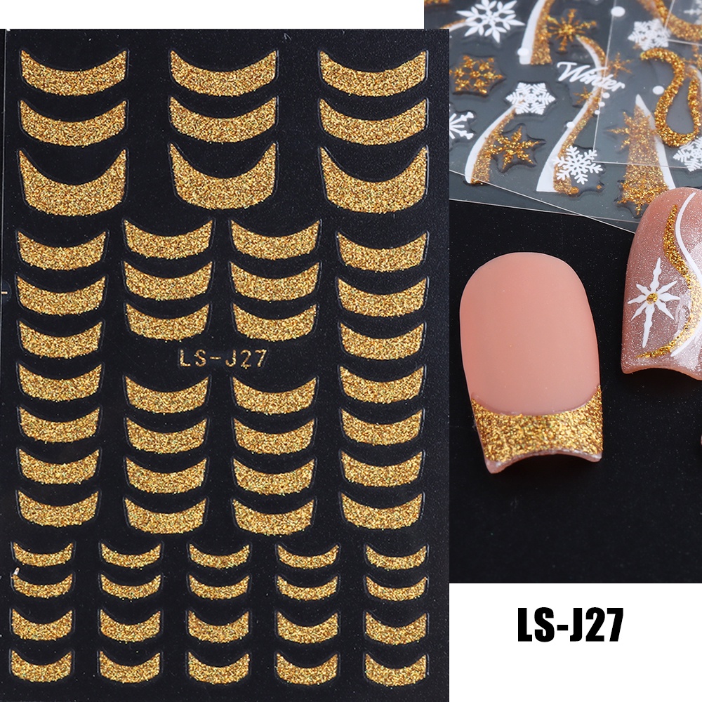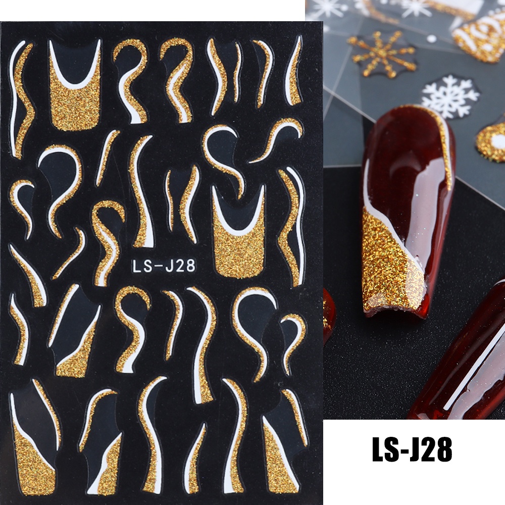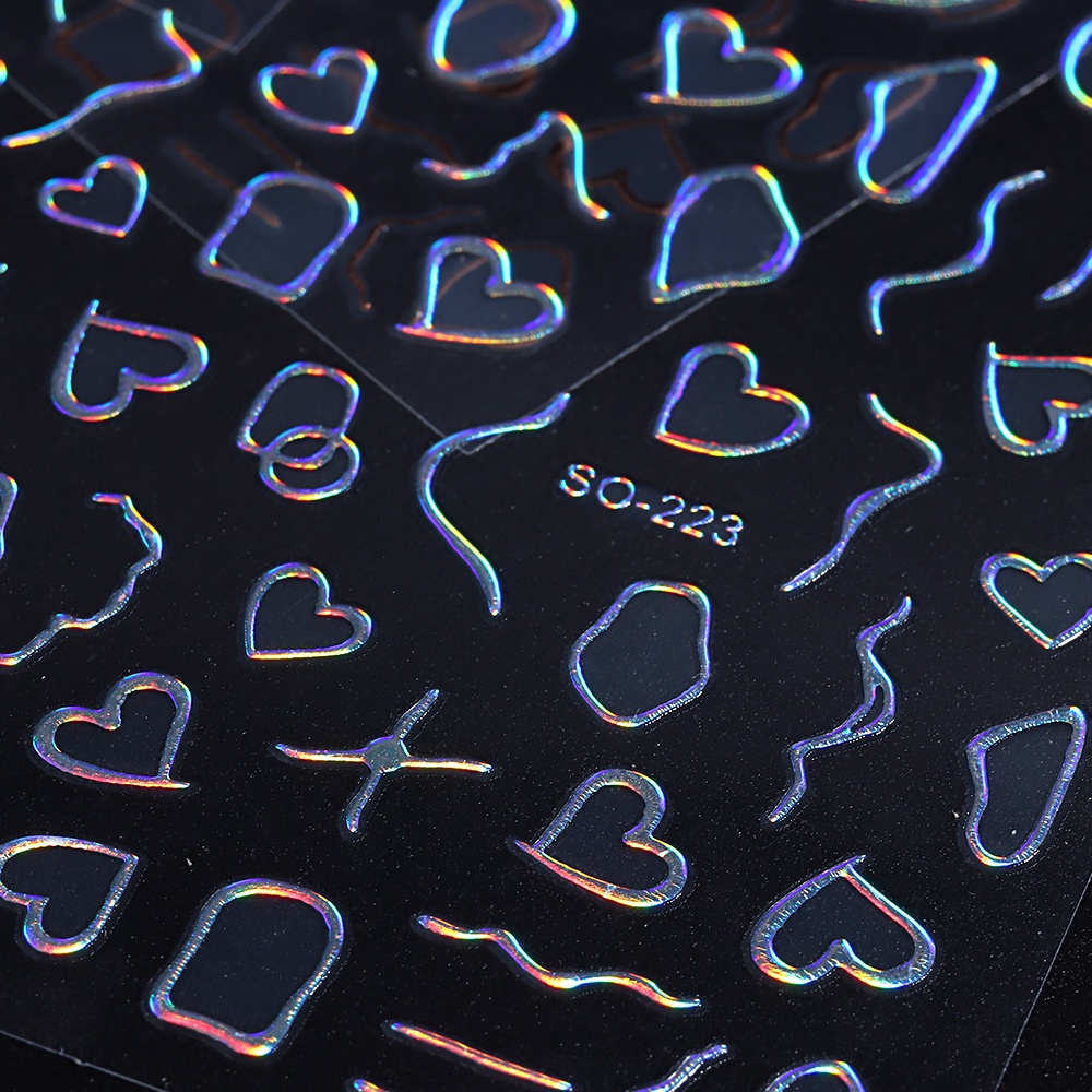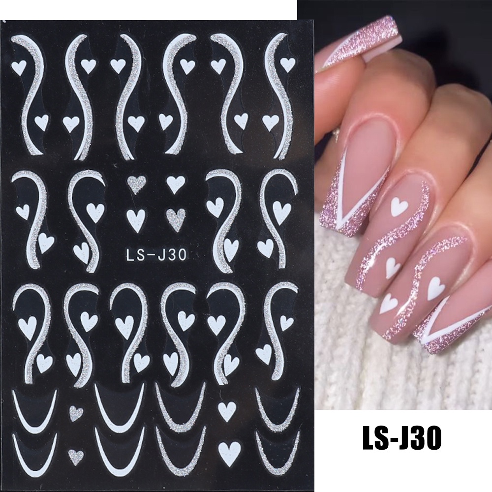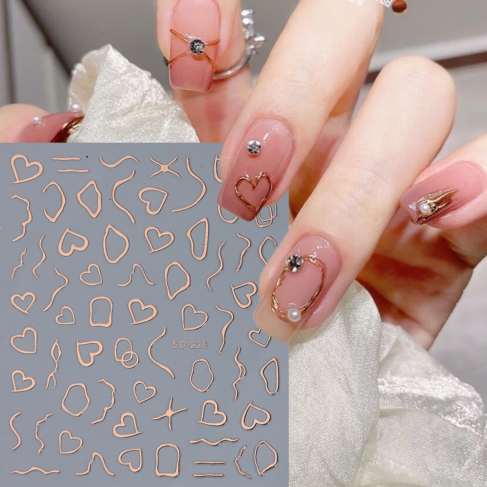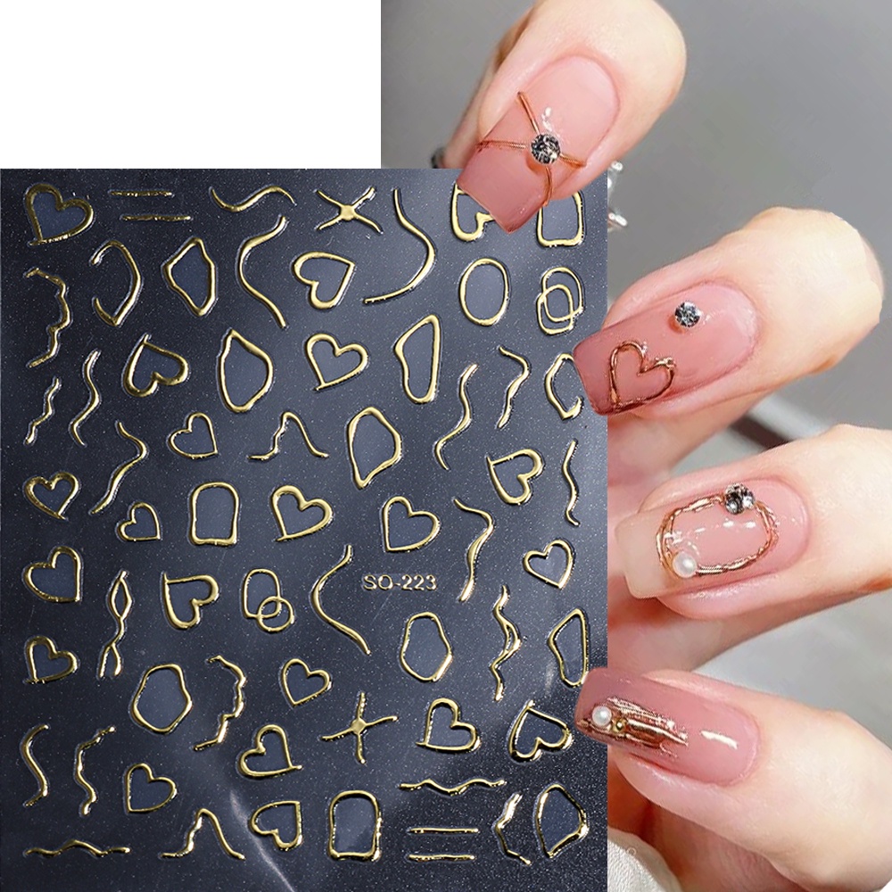 3D Gold Stripe Lines Nail Stickers Holographic Love Heart Sliders For Nails Swirls Cruved Wave Decals Manicure Tattoos