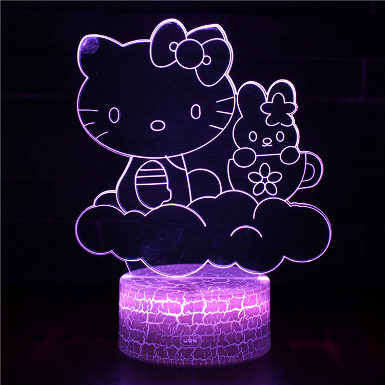 3D Illusion Led Night Light Lamp Cute Hello Kitty Baby Nursery Room Nightlight Kids Childrens Bedroom Decoration Gift 3d Lamp