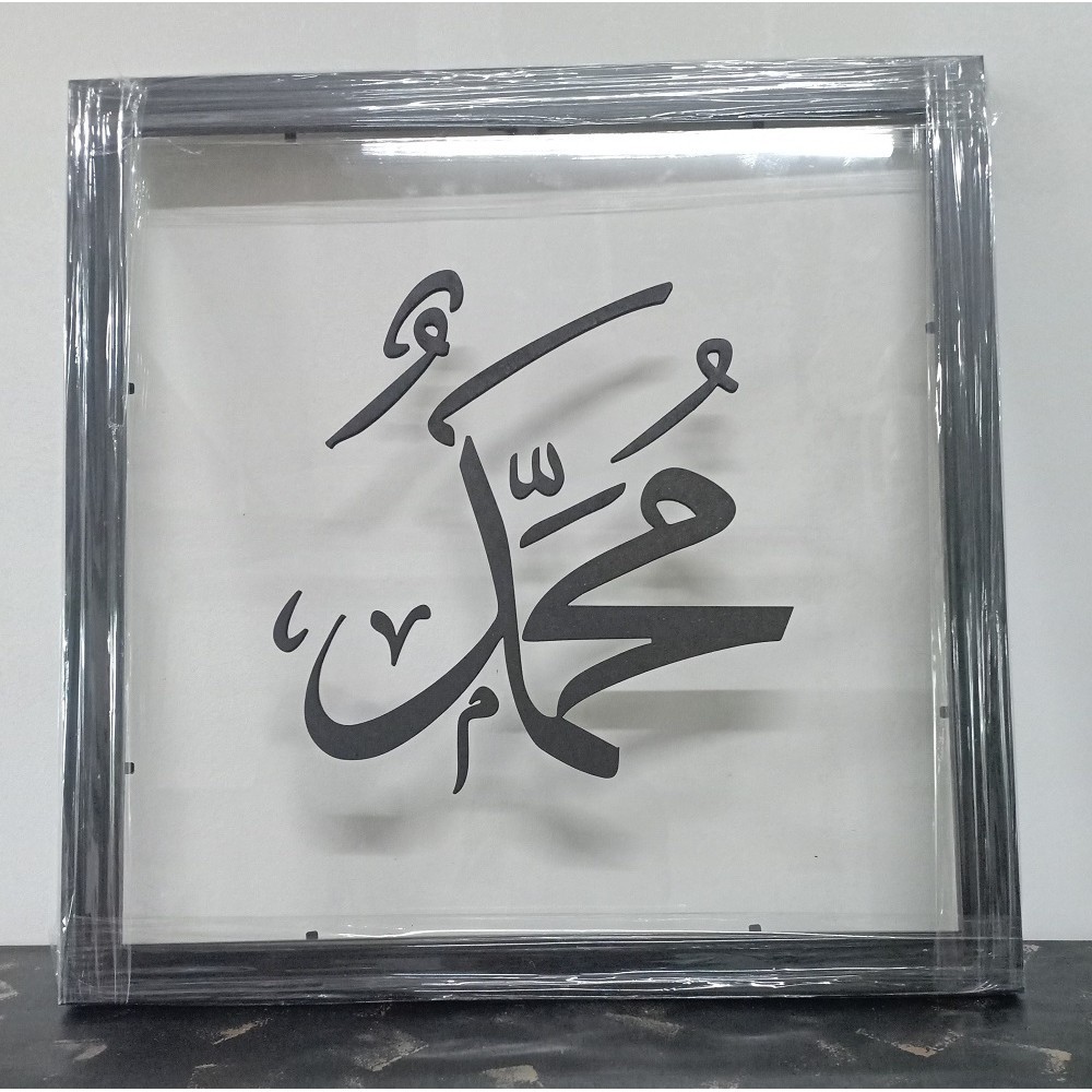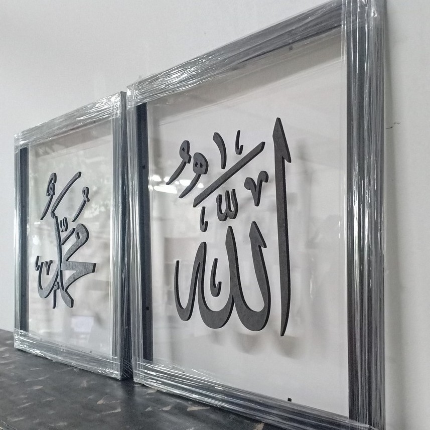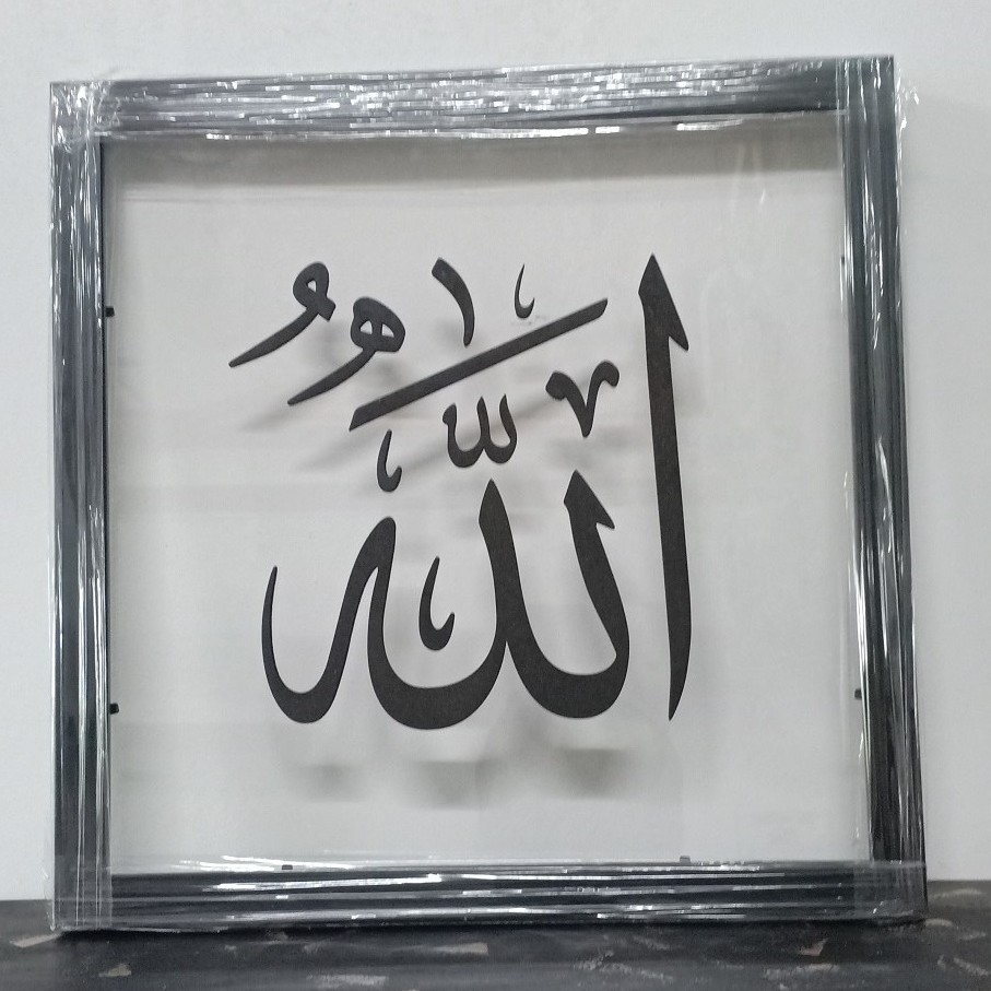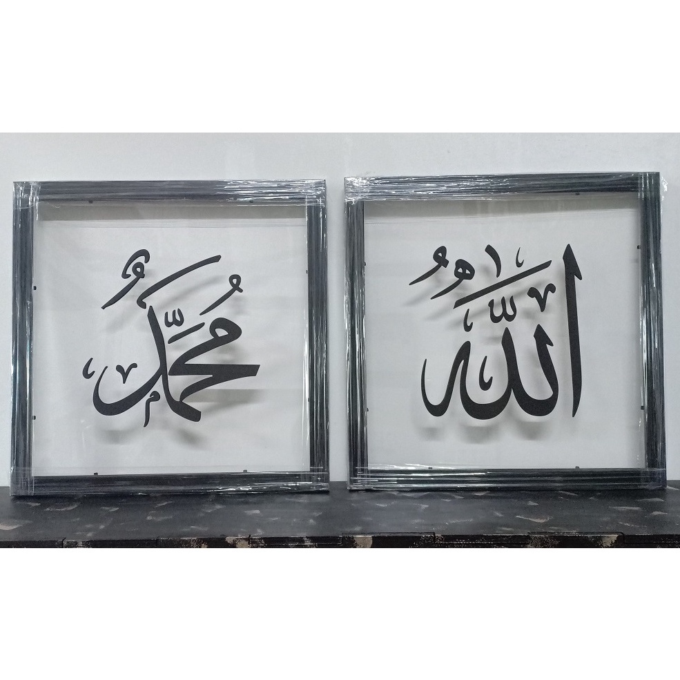 3D Islamic Wall Art Frame Khat Kufi Transparent Acrylic Base BLACK Wording + Frame WOOD(Set)