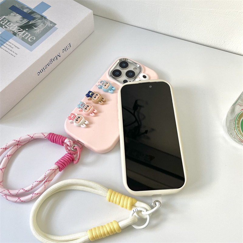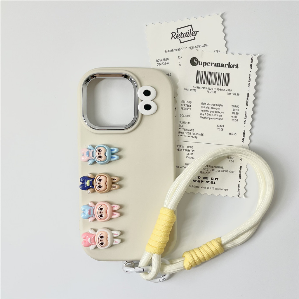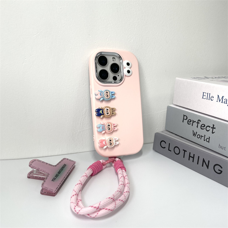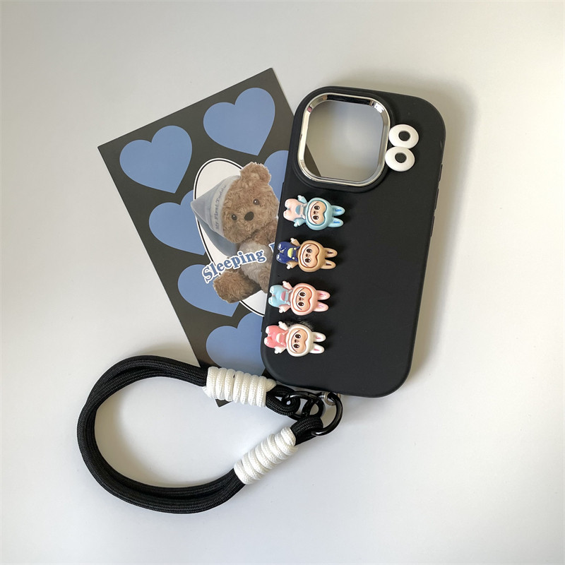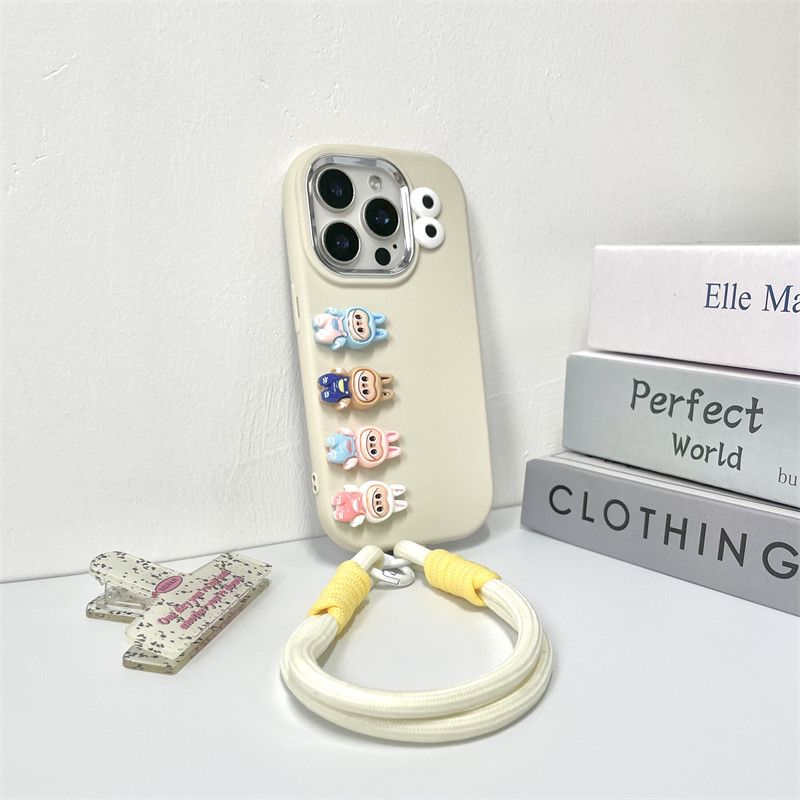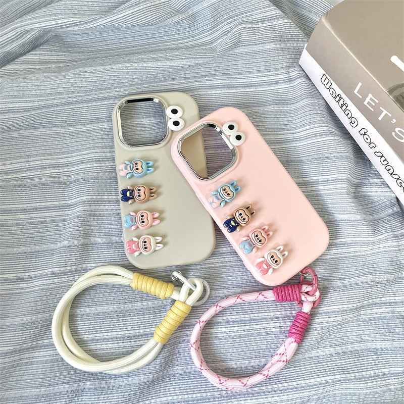 3D Labubu Cartoon Toy Phone Case For iPhone 16 promax 15 14 Plus 13 12 11 Pro Max Mini Casing With Wrist Strap Cute Eyes Soft Silicone Cover