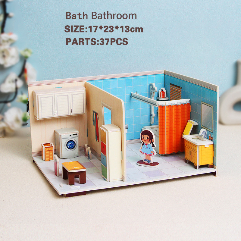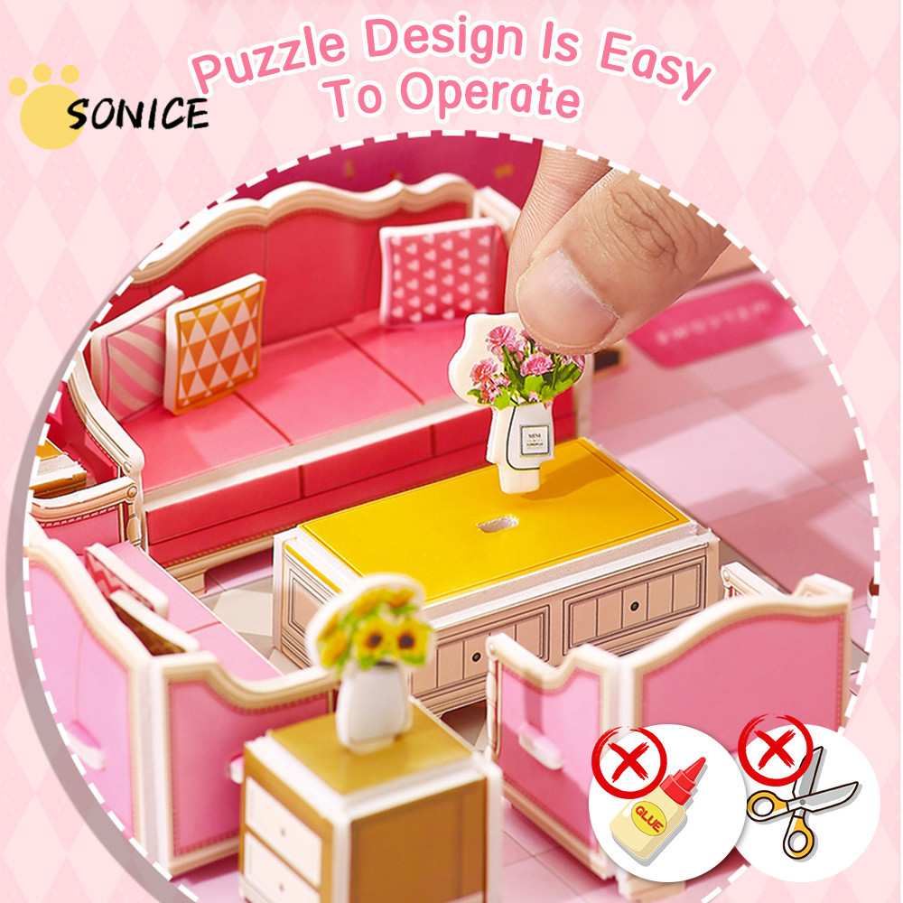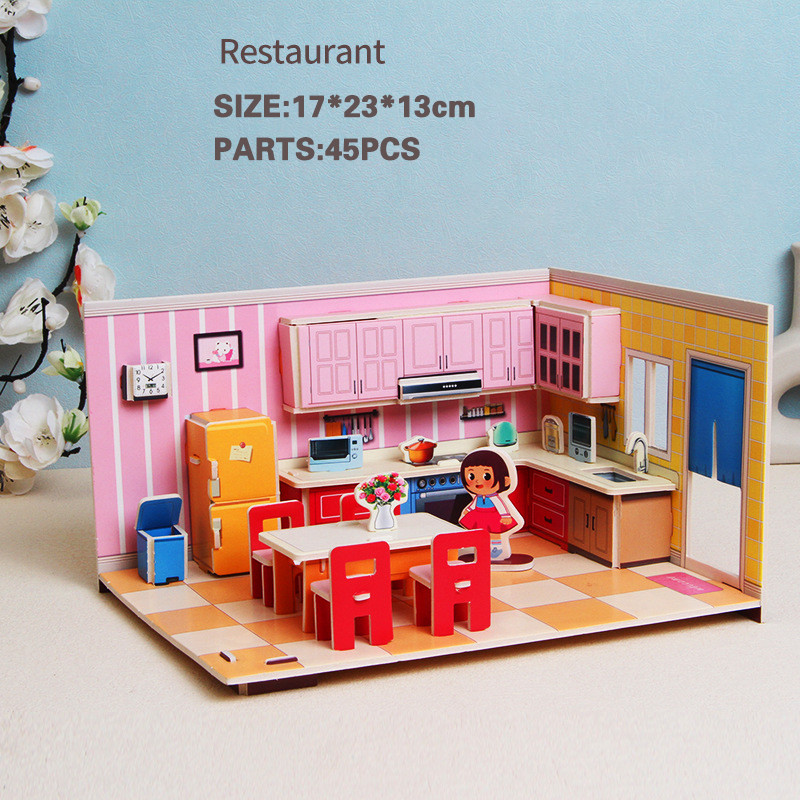 3D Miniature House Puzzle for Kids Cut-free DIY Doll House Jigsaw Puzzle Kit Kids Early Learning Puzzle Toys