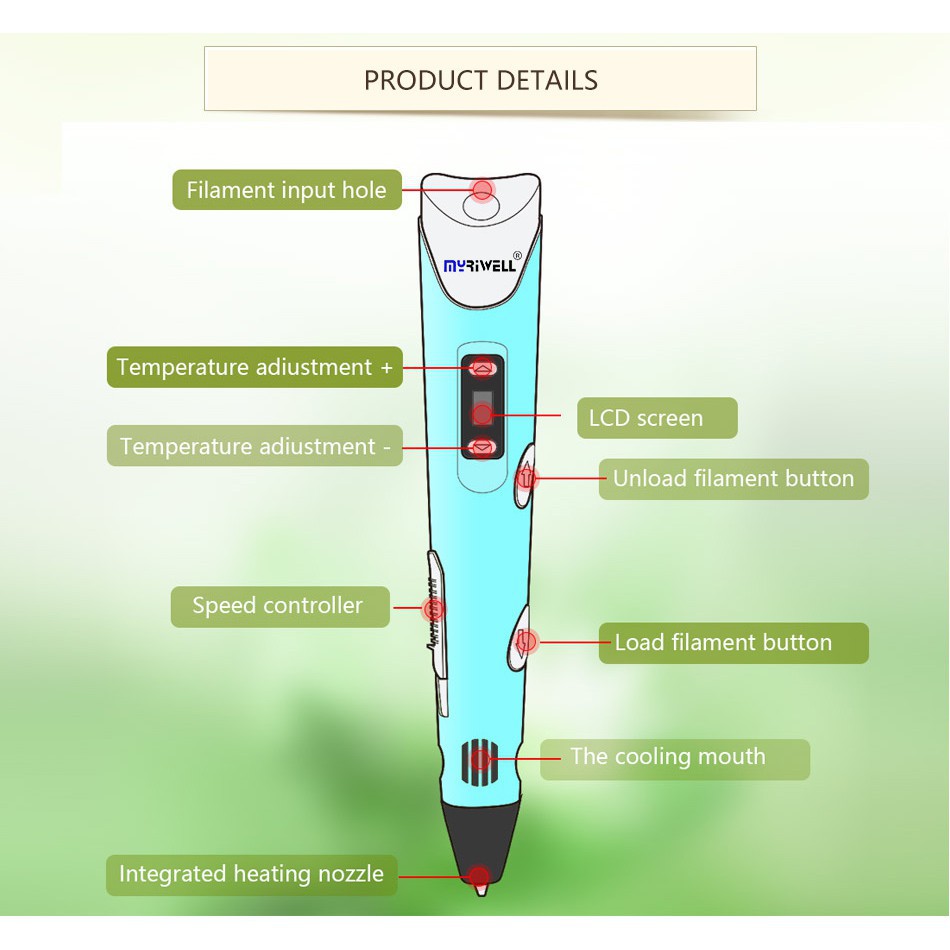 3D Pen DIY 3D Printing Pen Crafting Doodle PLA Filament Drawing Arts Kids Toy Christmas Birthday Gift For Kids Design Dr