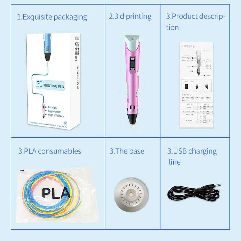 3D Pen DIY 3D Printing Pen Crafting Doodle PLA Filament Drawing Arts Kids Toy Christmas Birthday Gift For Kids Design Dr