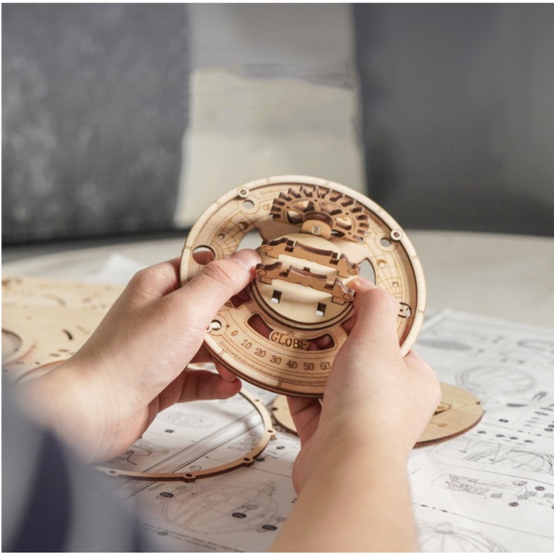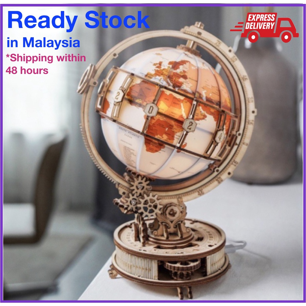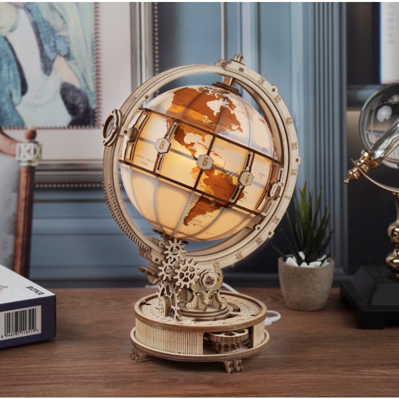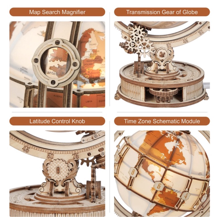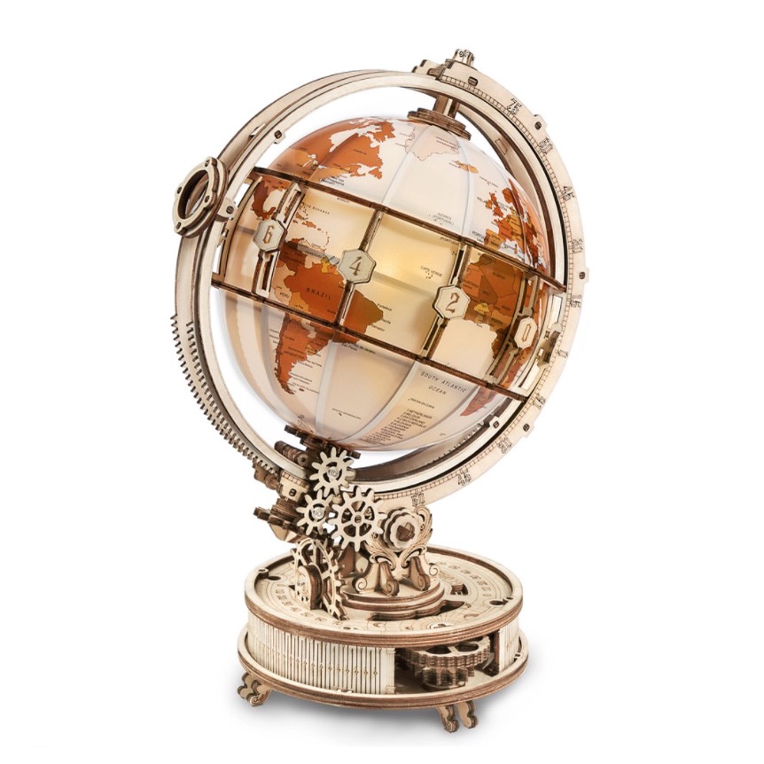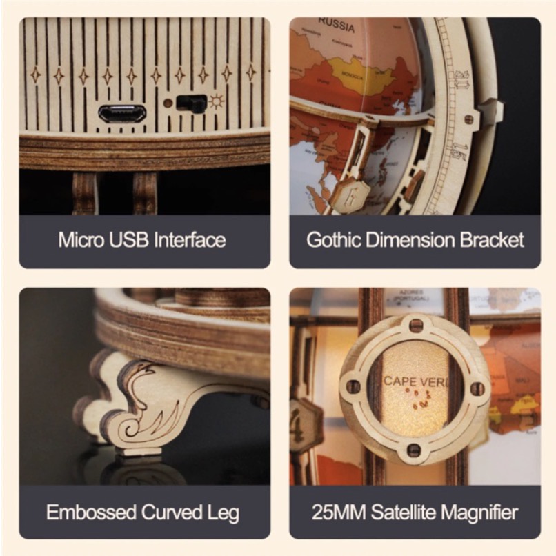 3D Puzzle Luminous Globe with LED Light 3D DIY Wooden Puzzle 3D Model Building Block Kits Assembly Toy Gift