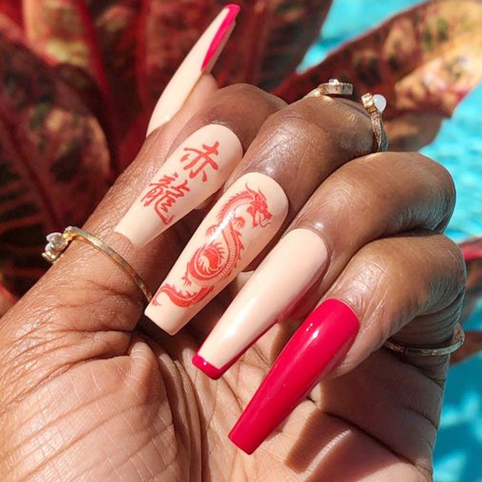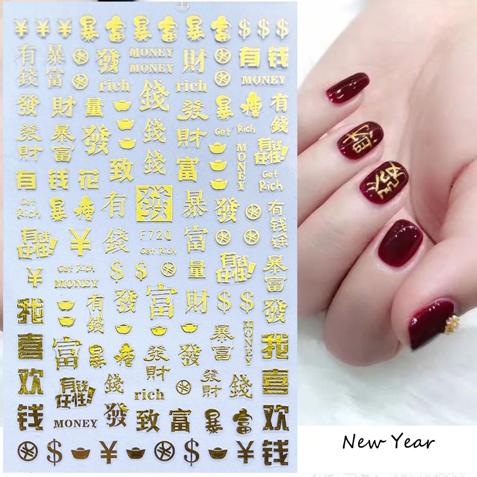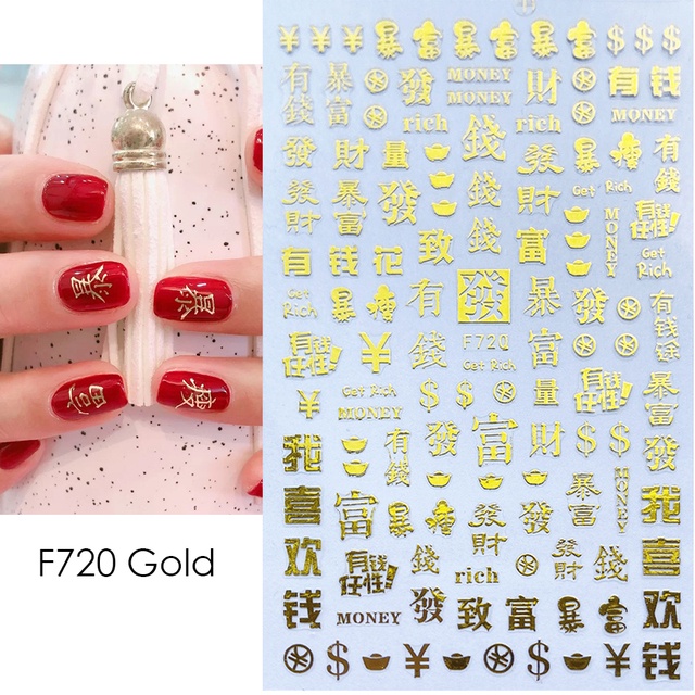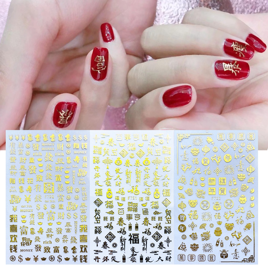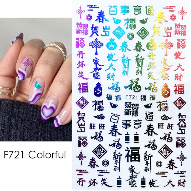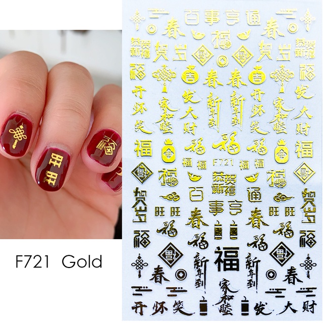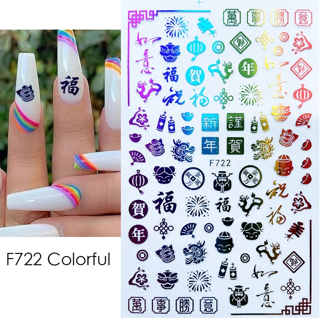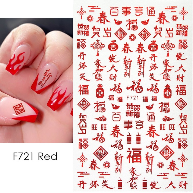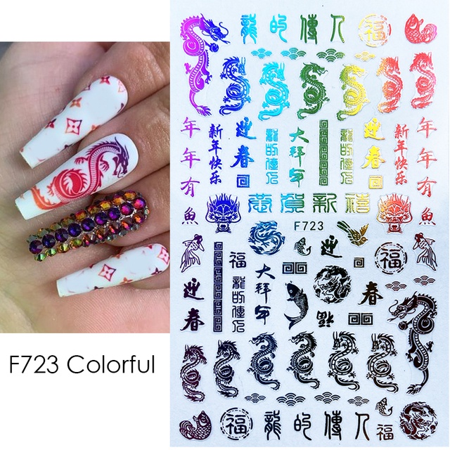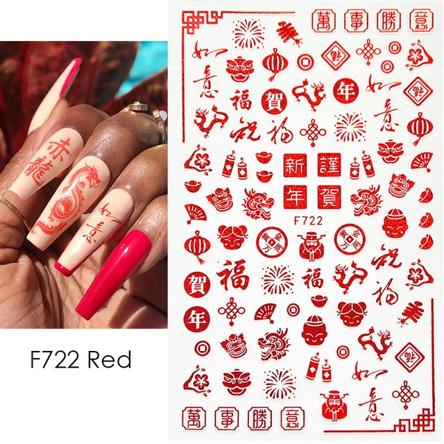 3D Red Dragon Chinese New Year Nail Decoration Art Stickers Colorful Money Snake Character Sliders Manicure Decals