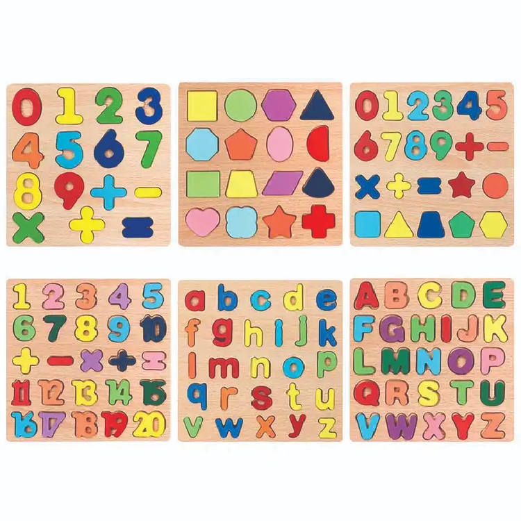3D Wooden Baby Learning Toys Puzzle Alphabet Number Shape Tetris Educational Montessori Board / Blok Mainan
