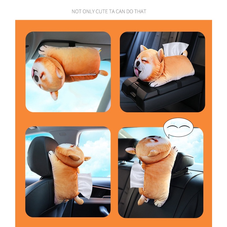 3D cartoon Car Tissue Box Holder Cute Dog Cat Tissue Box Cover Napkin Holder for Car Armrest Box Soft PP Cotton Multifunction