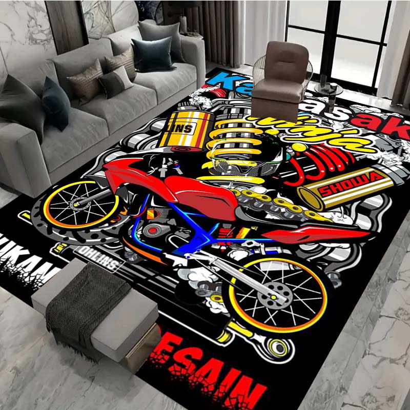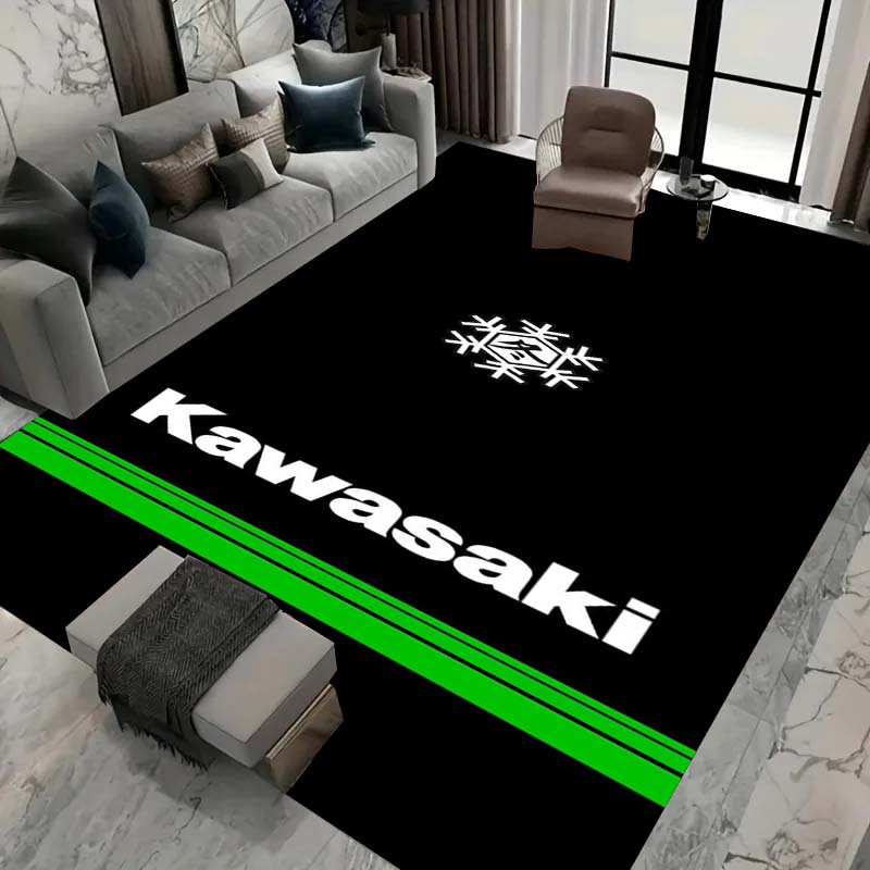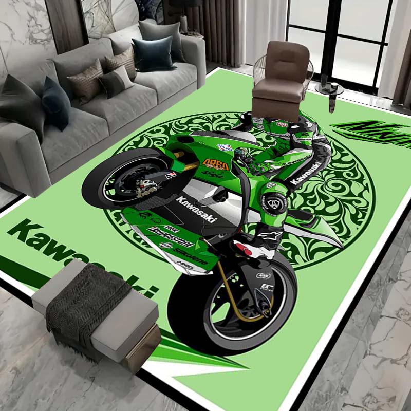 3D motorcycle Kawasaki printed carpet, living room, sofa area, children's crawling, washable floor mat, absorbent and non slip, customizable2
