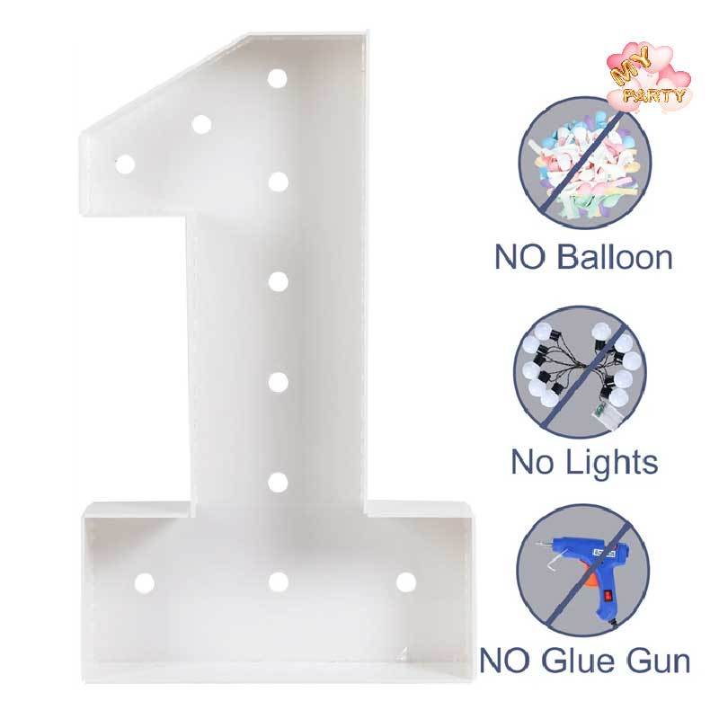 3FT 1-9 Giant Marquee Light Up Number Board Large Number Standee With Led Light DIY Balloon Box Alphabet Background Bab