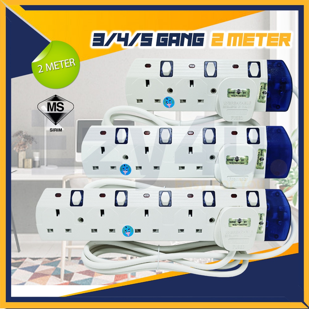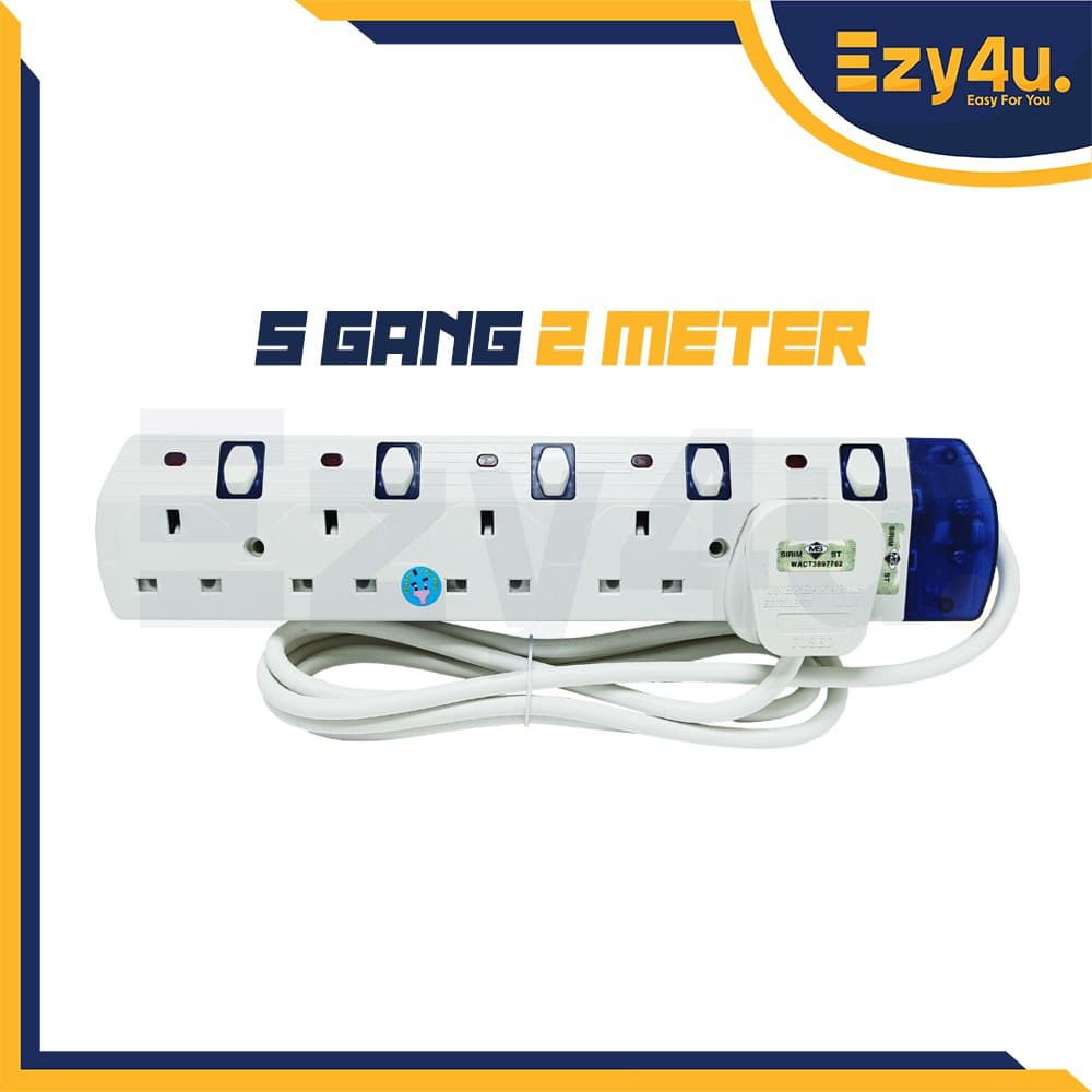 3Gang 4Gang 5Gang Extension Socket Trailing Socket with SIRIM 100% Full Copper Wire With Neon