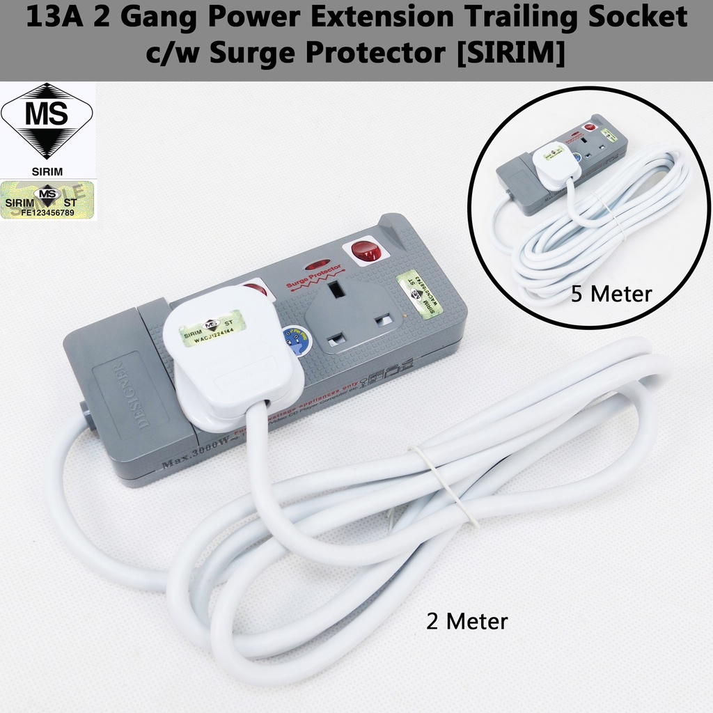 3H 13A Multi Soket Sambungan Bertingkat Extension Trailing 2Gang-5Gang c/w Port USB & Surge [SIRIM]