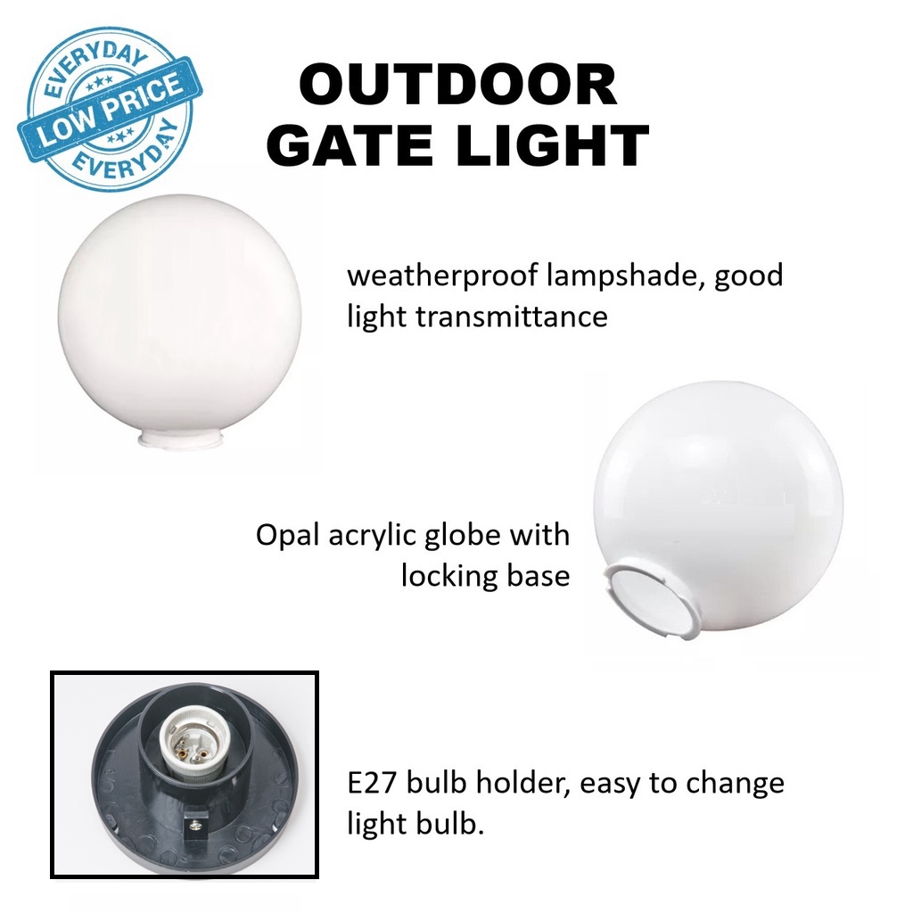 3H Lampu Casing Pagar Kalis Cuaca E27 6/8/10/12-inci Outdoor Globe Opal Casing For Tiang/Gerbang