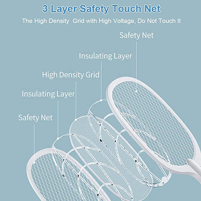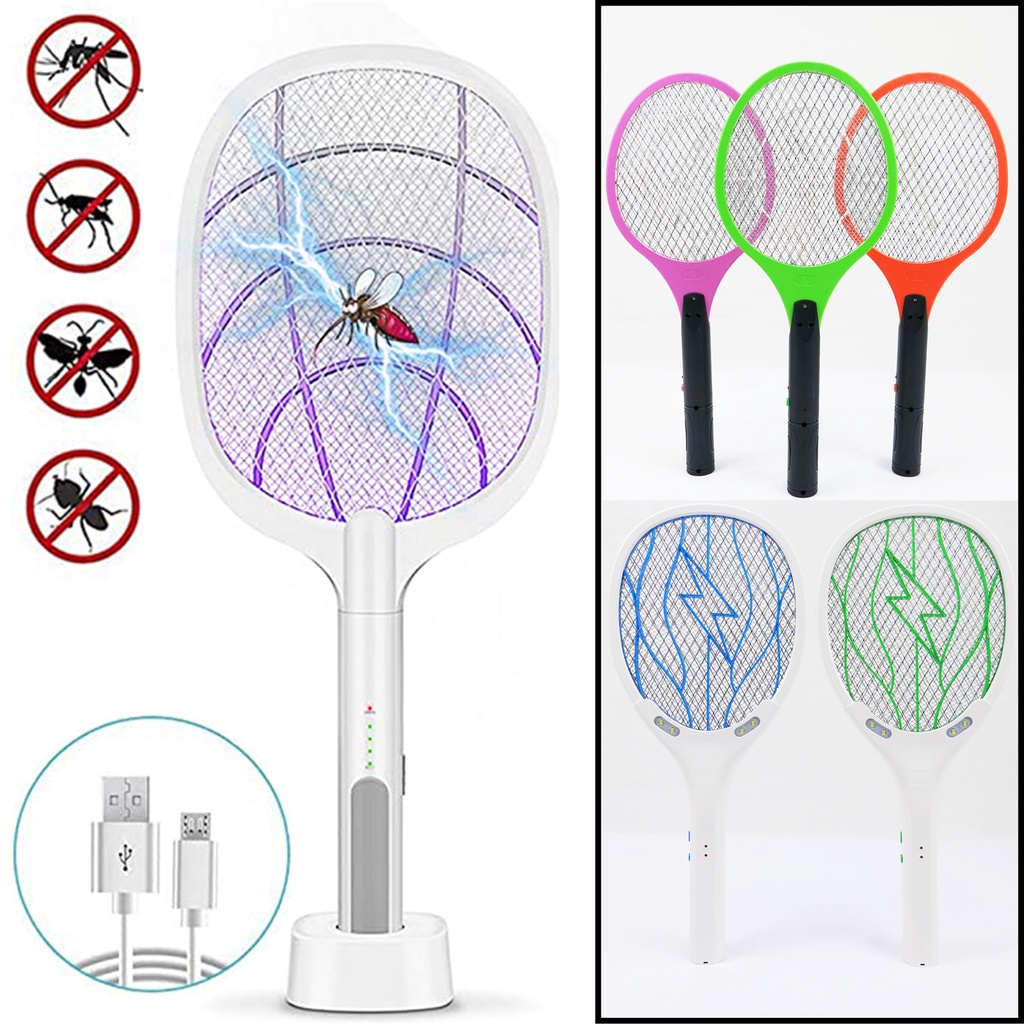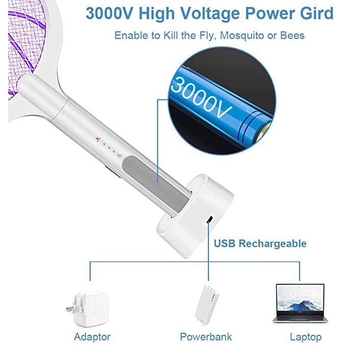 3H Raket Nyamuk Elektrik Boleh Cas Semula c/w LED/Perangkap Serangga (Rechargeable Mosquito Swatter)