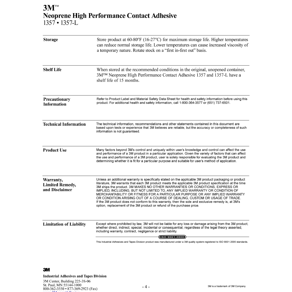 3M 1357 Neoprene High Performance Contact Adhesive 5 Oz (148ml)