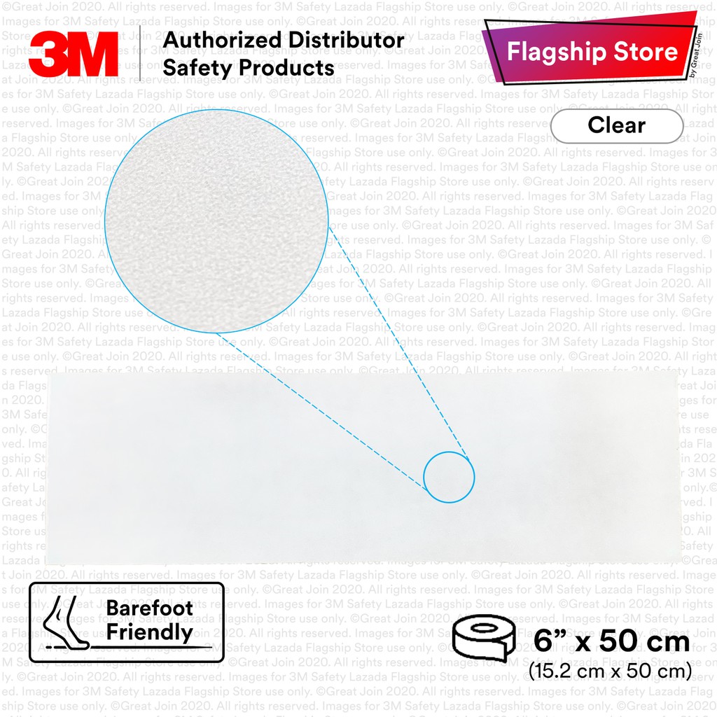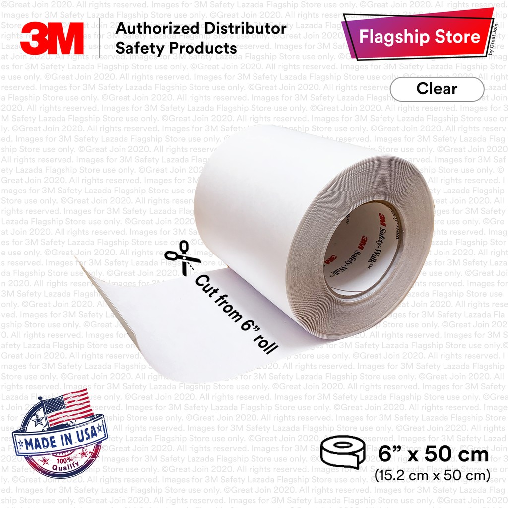 3M 220 6" Safety-Walk Clear Anti Slip Floor Tape/ Slip Resistant Fine Resilient Tapes and Treads [50cm] Made in USA