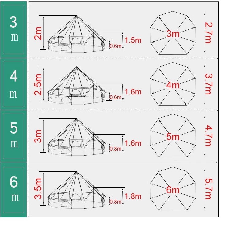 3M 4M 5M 6M Outdoor Waterproof Four Season Family Camping and Winter Glamping Bell Tent with Mosquito