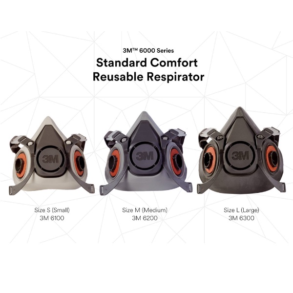 3M 6100 / 6200 Half Facepiece Dual Cartridge Respirator, Size: S , M