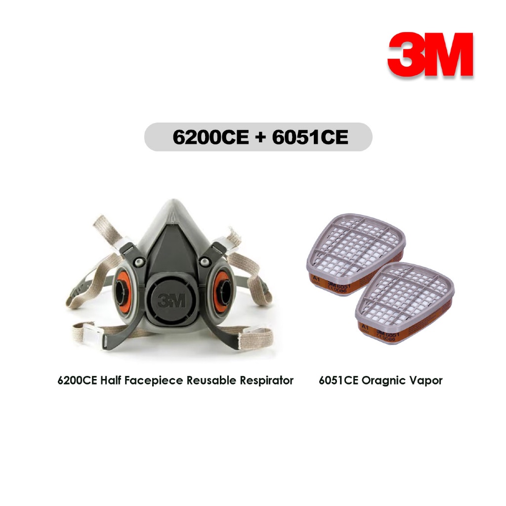 3M 6200 CE Half Facepiece Reusable Respirator Mask 6051 CE Organic Vapor Filter 6051CE 6096CE