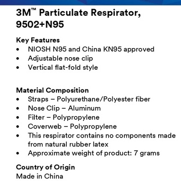 3M 9502+ N95 Particulate Respirator/ 1 Box@50Pcs