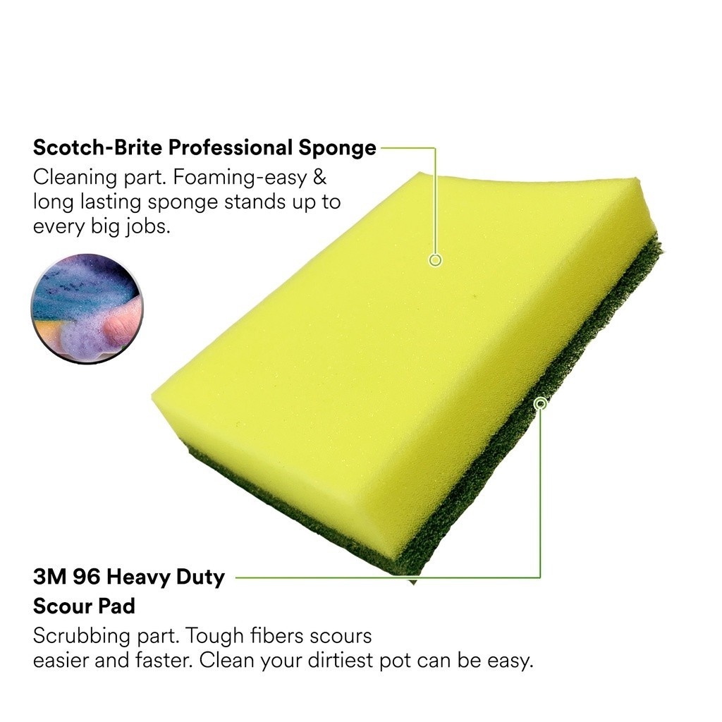 3M 96 SCOTCH-BRITE HEAVY DUTY SCOURER PROFESSIONAL SCOURER SPONGE (2 IN 1 PACK)