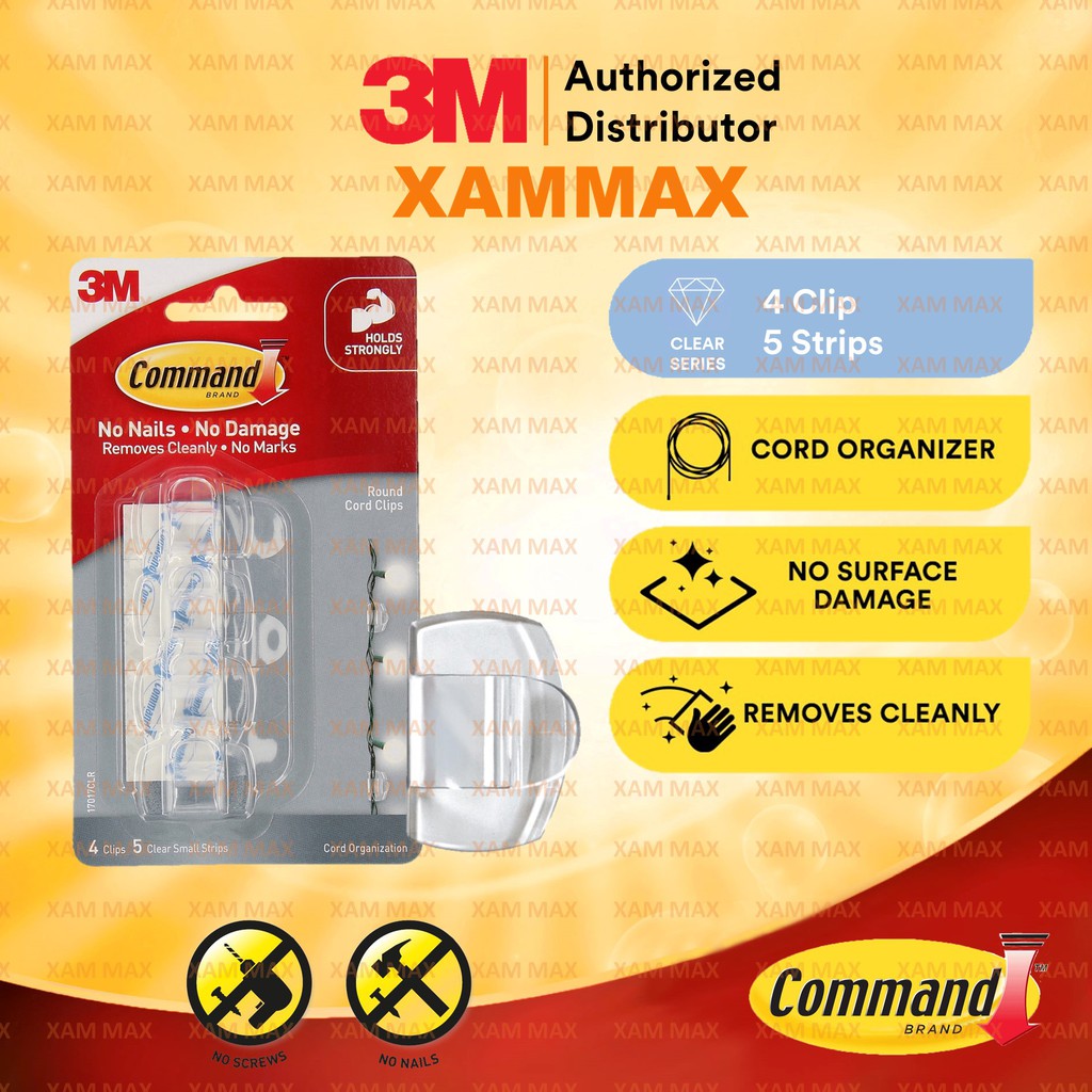 3M Command - 17017CLR Wall Mounted Small Cord Clips / Strong Adhesive / Damage Free Remova (Holds strongly) (4 pcs )