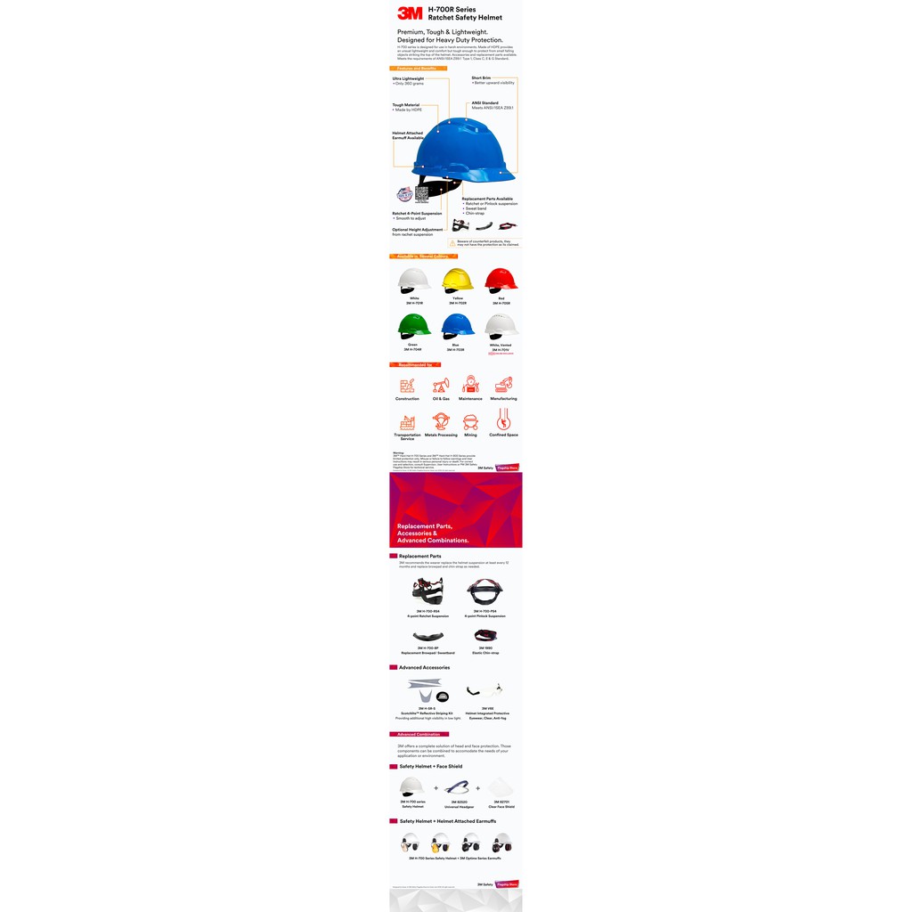 3M H-703R Blue Colour Safety Helmet/ Hard Hat/ 4-Point Suspension Ratchet/ ANSI Approval [1 piece] Made in USA SH_ PSD_