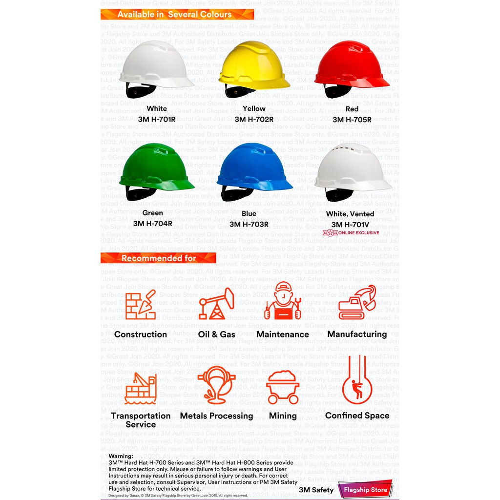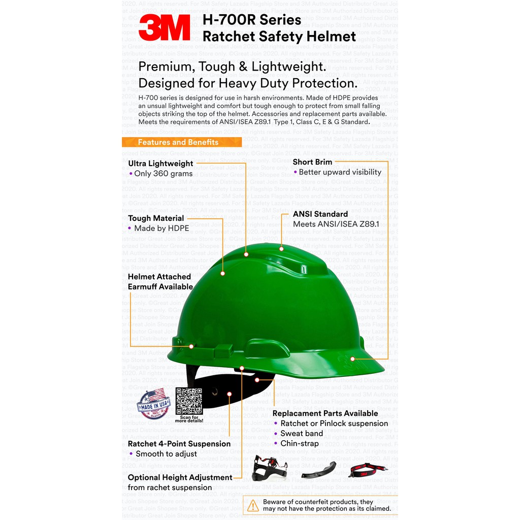 3M H-704R Green Colour Safety Helmet/ Hard Hat/ 4-Point Suspension Ratchet Type/ ANSI Approval [1 piece] Made in USA