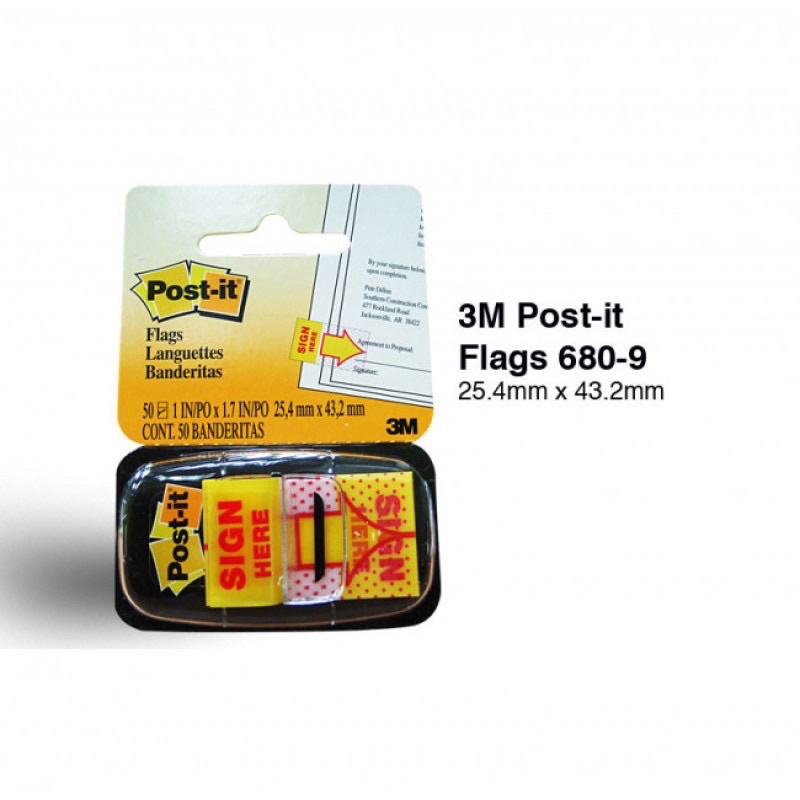 3M Post It Tape Flag Sign Here 680-9 1x1.7 (50'sheets)- Post It Notes-Sign Here
