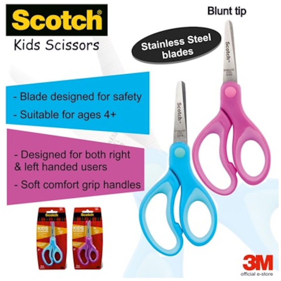 3M Scotch 1442B Kids Scissors with Soft Touch Handles/Stationery 1442 5" Kids Blunt Tip Scissors w/ Soft Touch