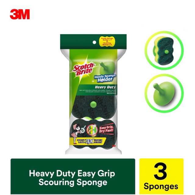 3M Scotch Brite Heavy Duty Easy Grip Scouring Sponge With Holder (3Pcs/Pack)