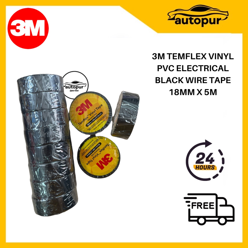 3M Temflex Vinyl PVC Electrical Black Wire Tape 18mm x 5M