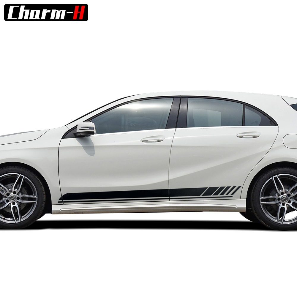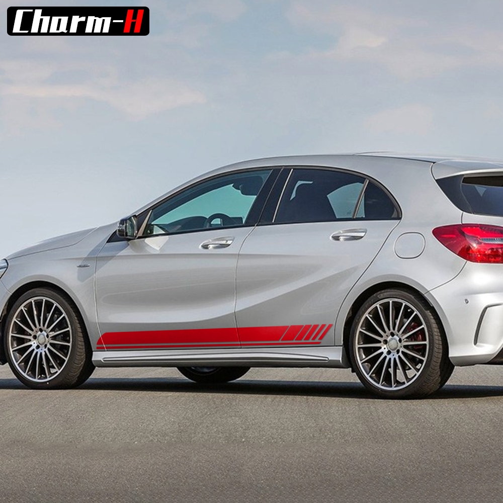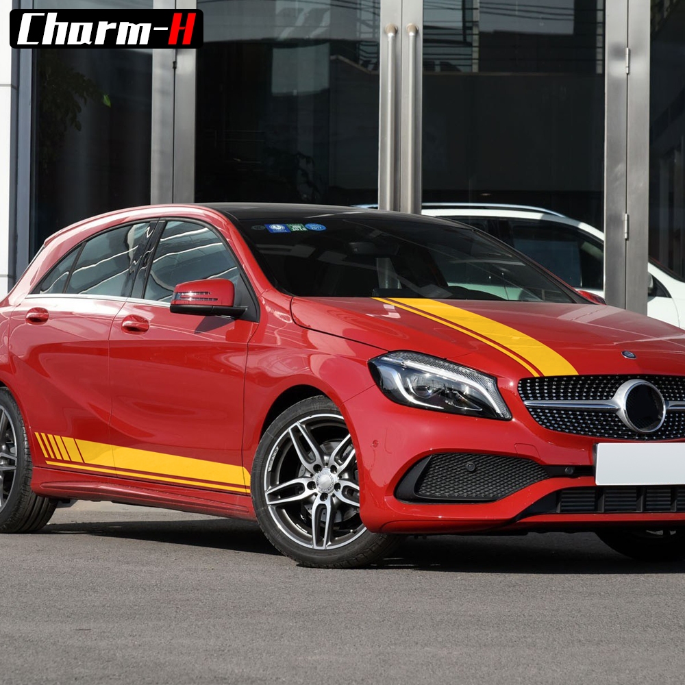 3PCS Racing Stripes Kit Compatible with Mercedes Benz A Class W176 Hatchback A45 A35 AMG Car Hood Decal Bonnet Door Side Skirt Rocker Panel Stripes Stickers