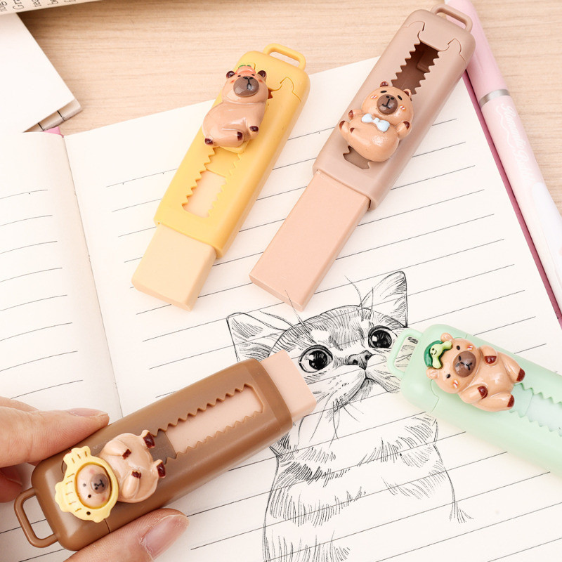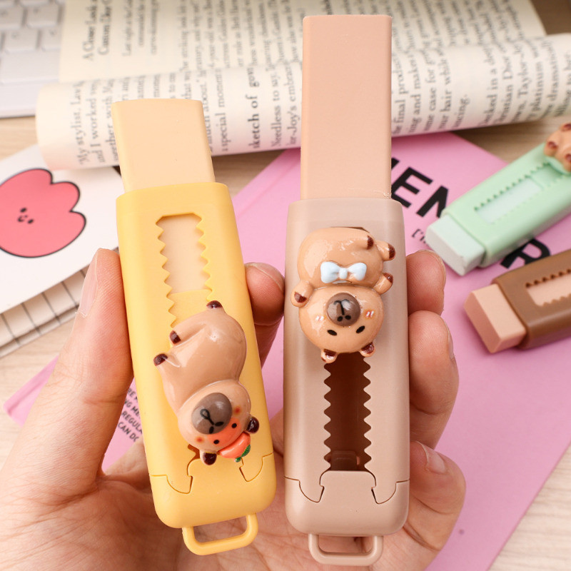 3Pcs Capybara Eraser - Extendable Pencil Eraser - Push-Pull Eraser - Cartoon Character-themed Stationery - For Students - Without Trace - Painting Wipe - School Office Supplies