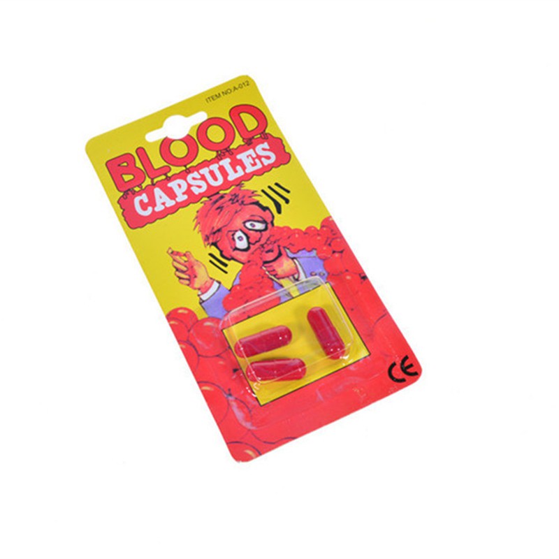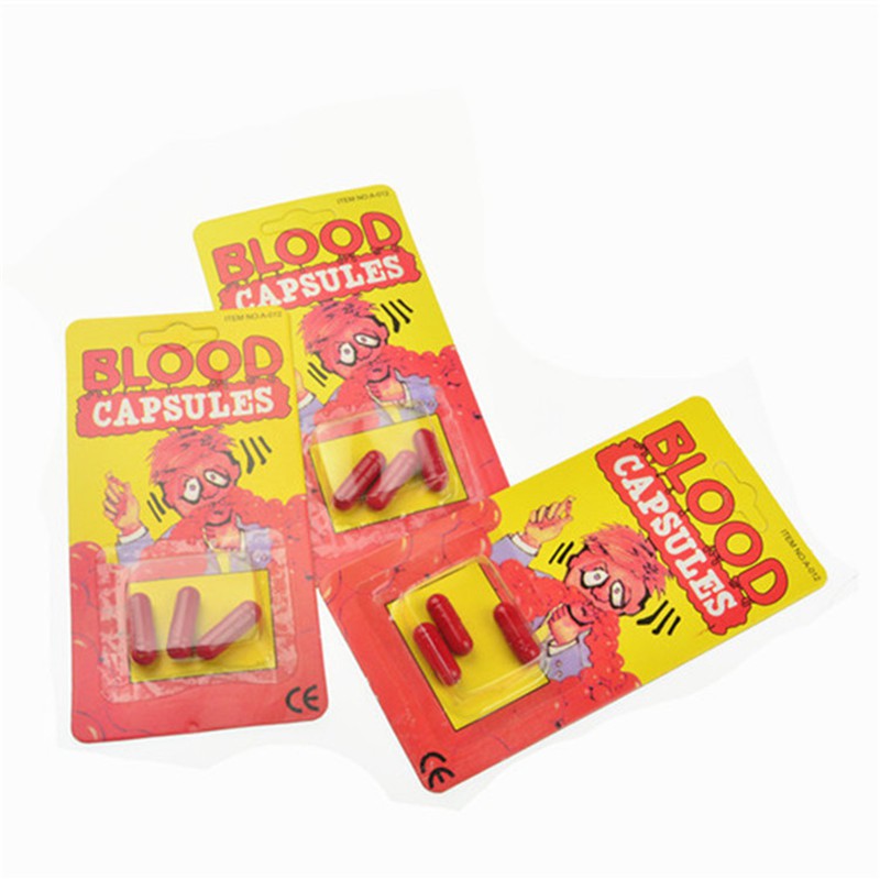 3Pcs Fake Blood Pill Horror Funny Halloween Prop Gag Realistic Fake Blood Capsules