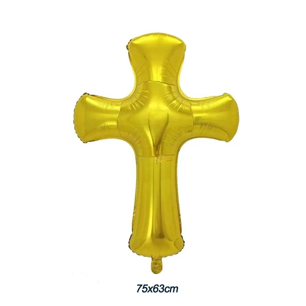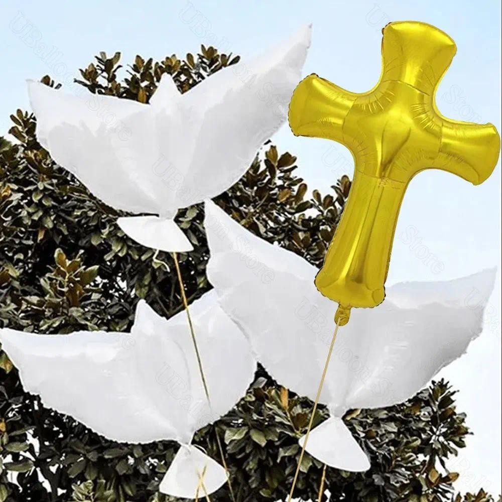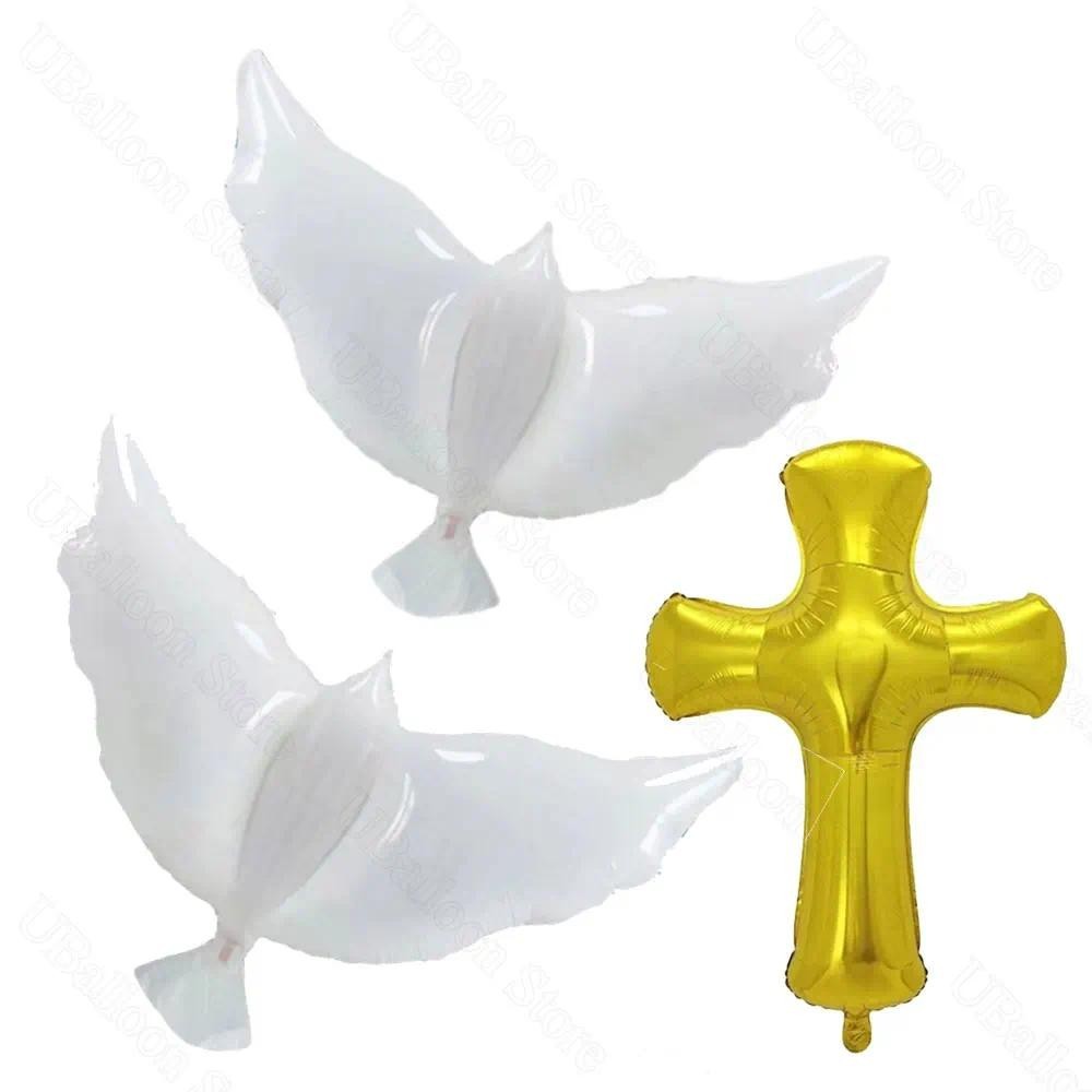 3Pcs Pigeon Cross Foil Balloons White Peace Dove Gold Cross Helium Balloon for Baby Shower Birthday Baptism Wedding Party Decor
