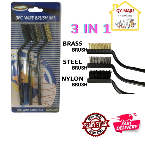 3Pcs in 1 Wire Brush/Brass Brush/Nylon Brush/Steel Brush/Berus 3 in 1/Berus mini/Berus Kegunaan SET