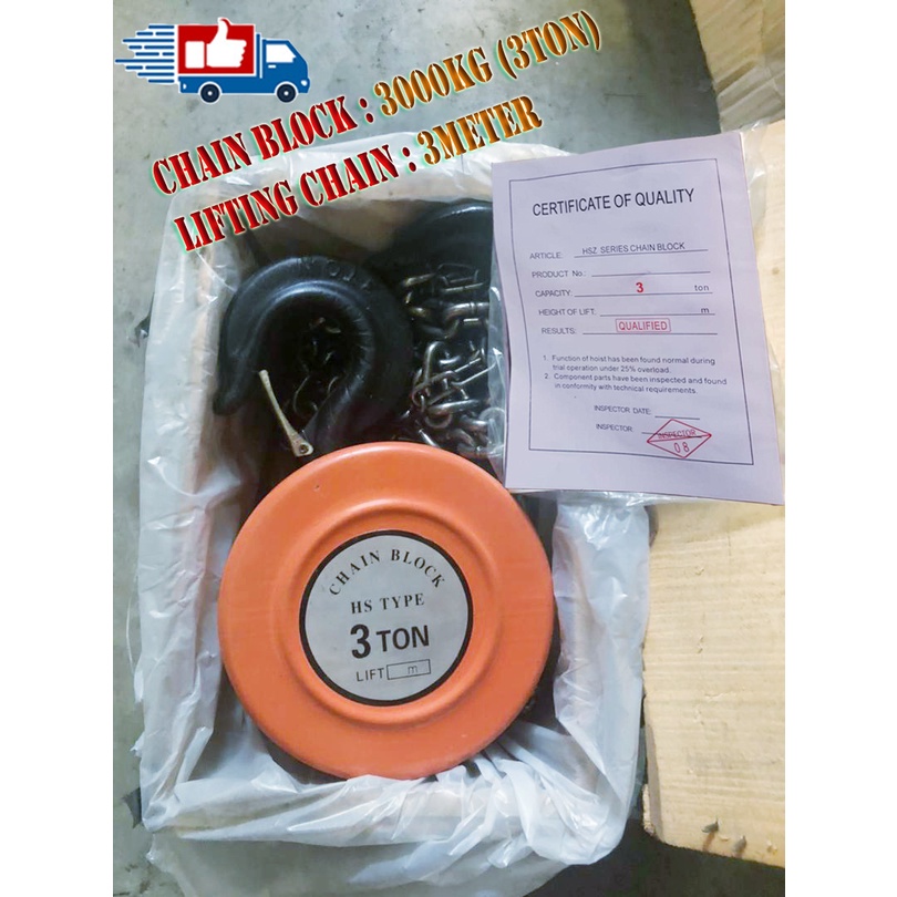 3TON MANUAL OPERATED CHAIN HOIST CHAIN BLOCK 3T X 3M (3 METER LIFTING CHAIN )