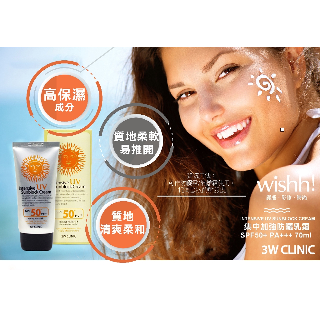 3W Clinic Intensive UV Sunblock Cream / Collagen / Natural Vita Moist Sun Cream Sun Screen 70ml