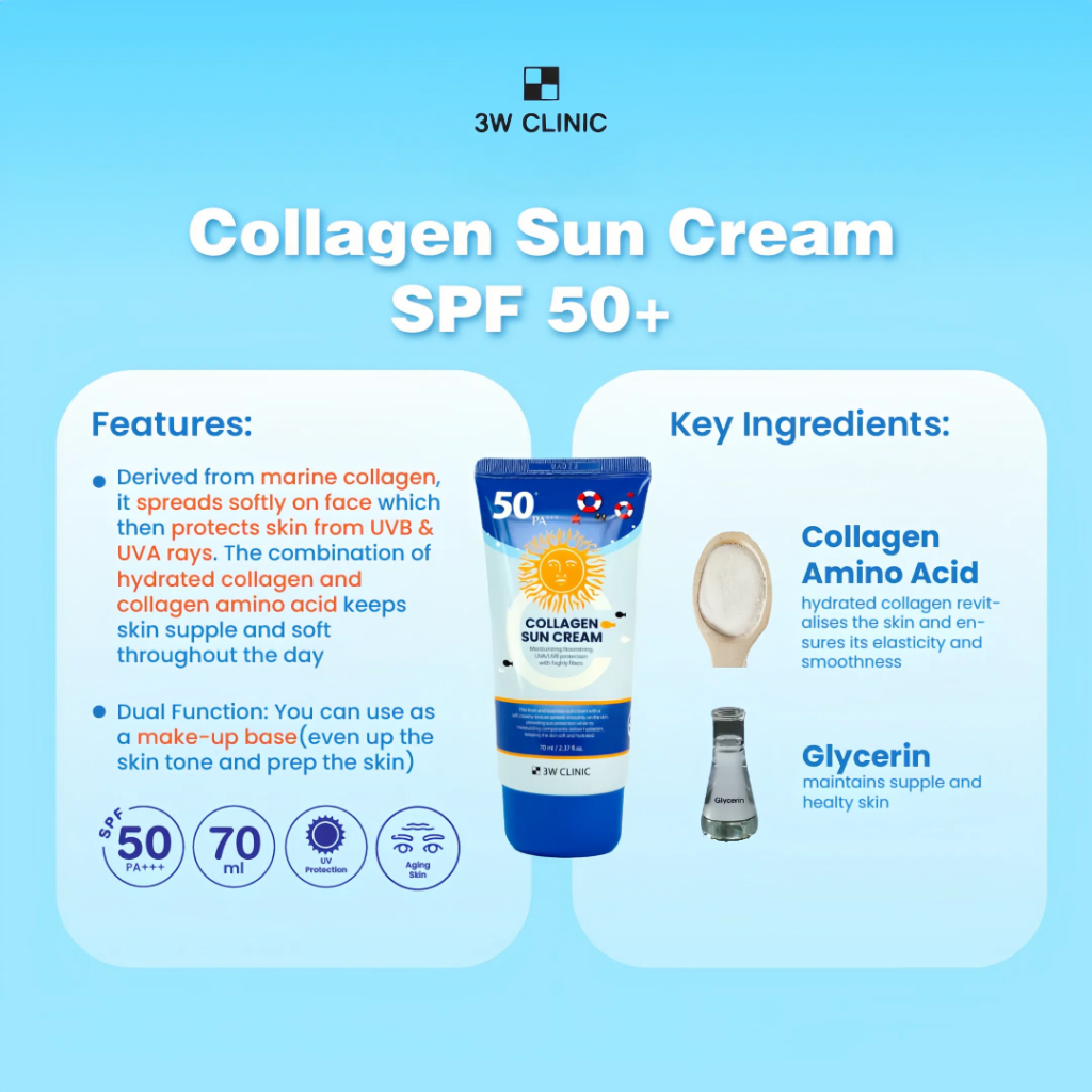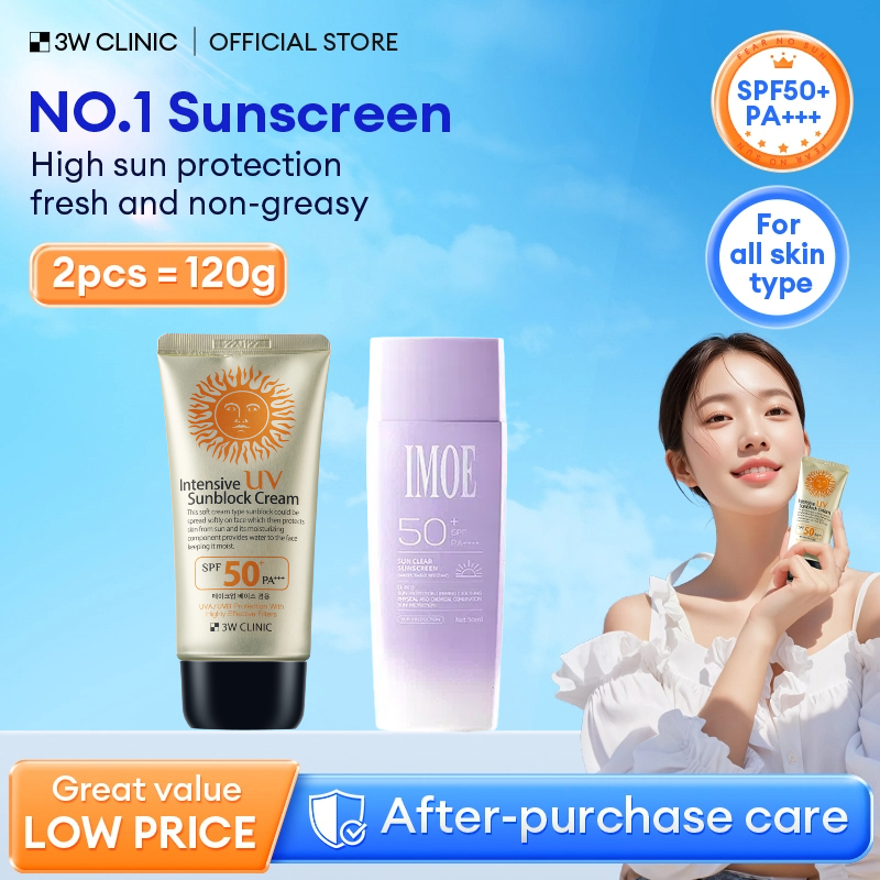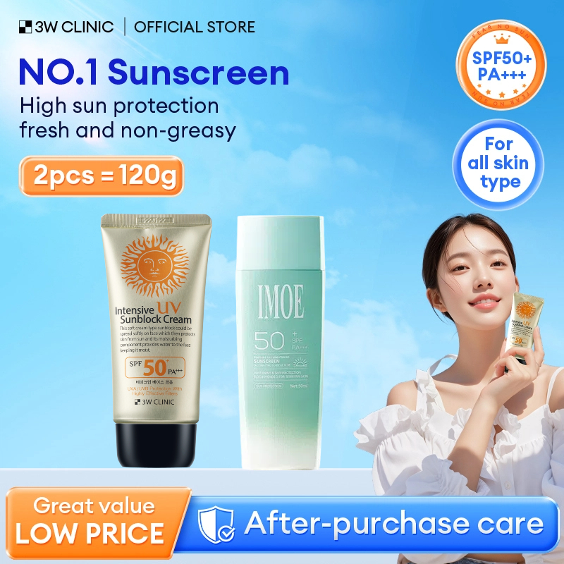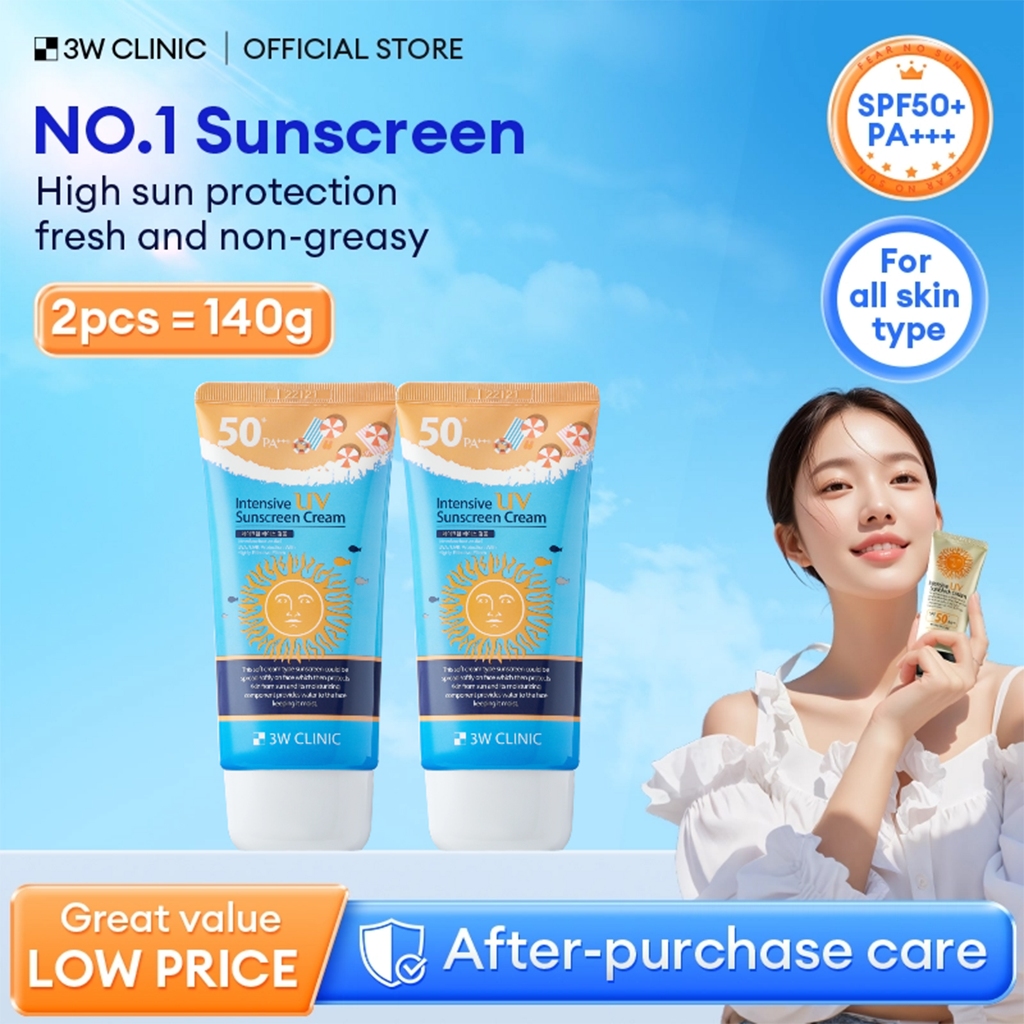 3W Clinic Sunscreen Intensive UV Sunblock Cream Refreshing Suncream Anti UV SPF50 PA+++ 70ml Sun UV Protection