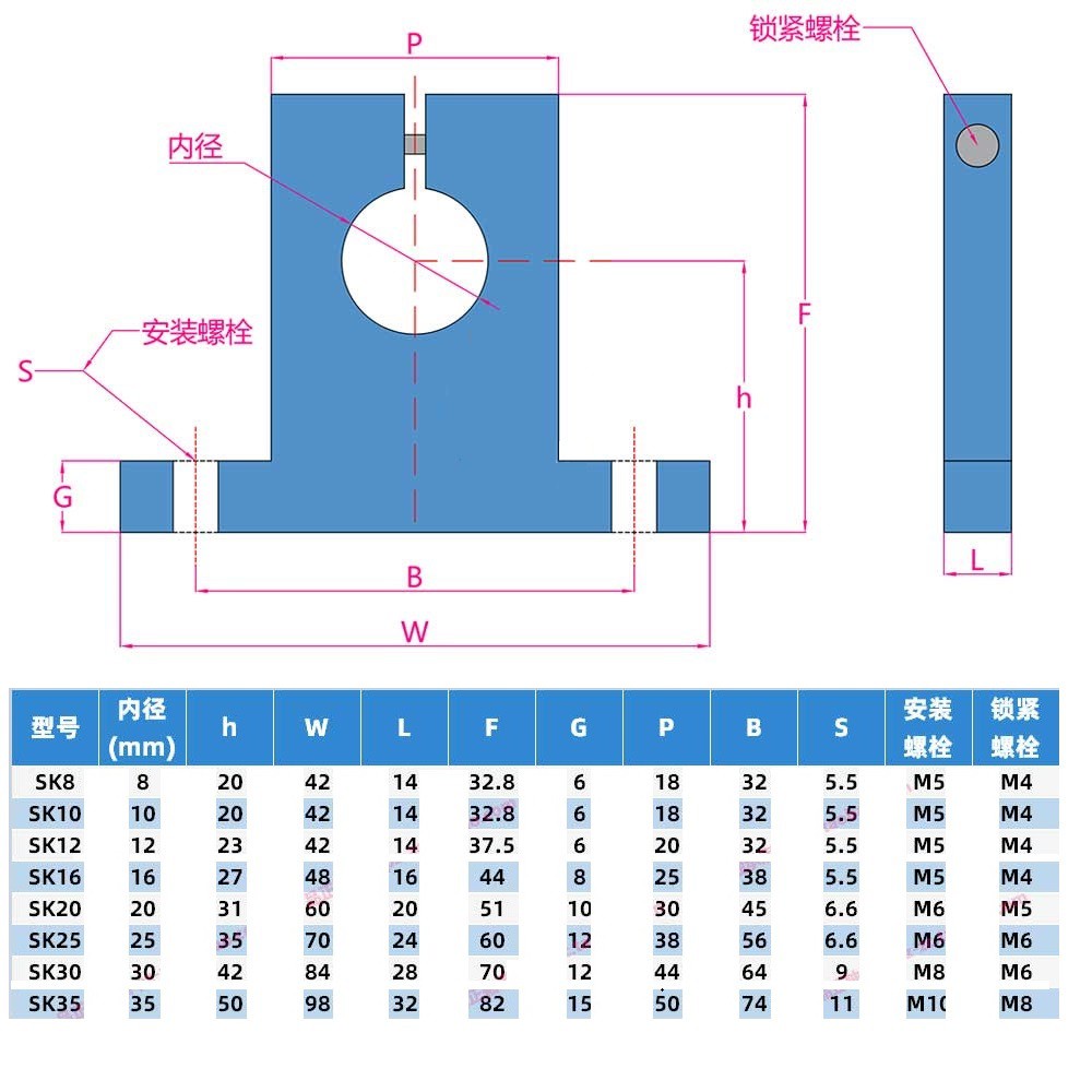 3D Printer Dedicated Optical Axis Light Rod Fixed Support Bracket SK8/SHF8/10/12/16/20/25/30 Horizontal/Vertical Support SK SHF