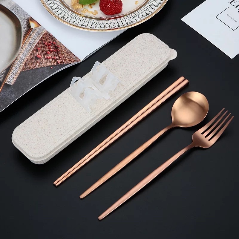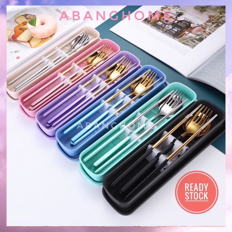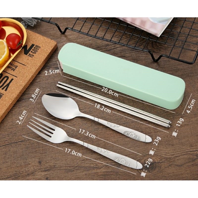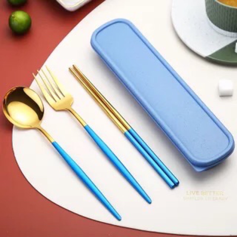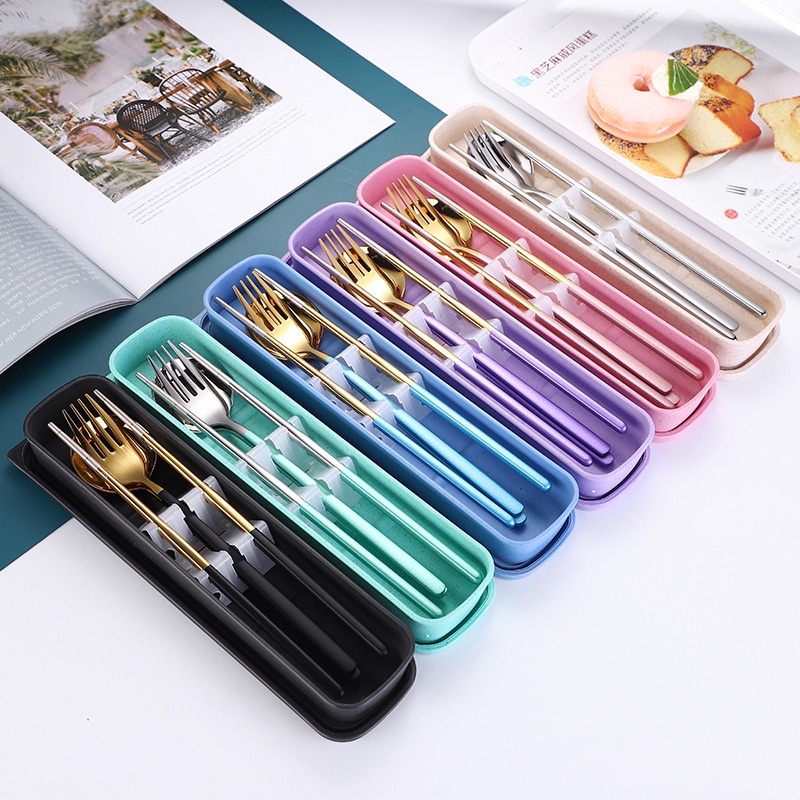 3in1 PORTABLE CUTLERY SET STAINLESS STEEL Utensil Spoon Fork Chopstick Set Travel EAT